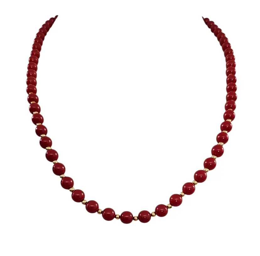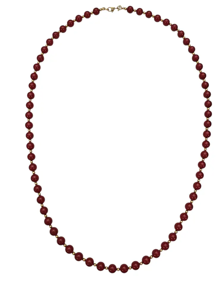 • Monet Red Bead Necklace And Ball Post Earrings Set • Vintage Monet costume jewelry • Red Lucite beads • Radiant gold-tone metal setting • The necklace bead measures approximately 7.8 mm in size • The post earring ball beads measure approximately 5.9 mm in size • The bead necklace measures 28 inches in total length • The necklace has a rectangular-shaped metal tag marked ©MONET • The ends of the necklace are fastened with a Sister clasp closure • This clasp consists of two hooks that interlock, creating a strong and secure connection that is difficult to open accidentally • The posts are securely fastened with pushbacks that slide onto a straight earring post that holds your earring in place • These earrings and necklace set can be worn as an everyday piece • The earrings come with their original cardboard backing • Good condition • C327