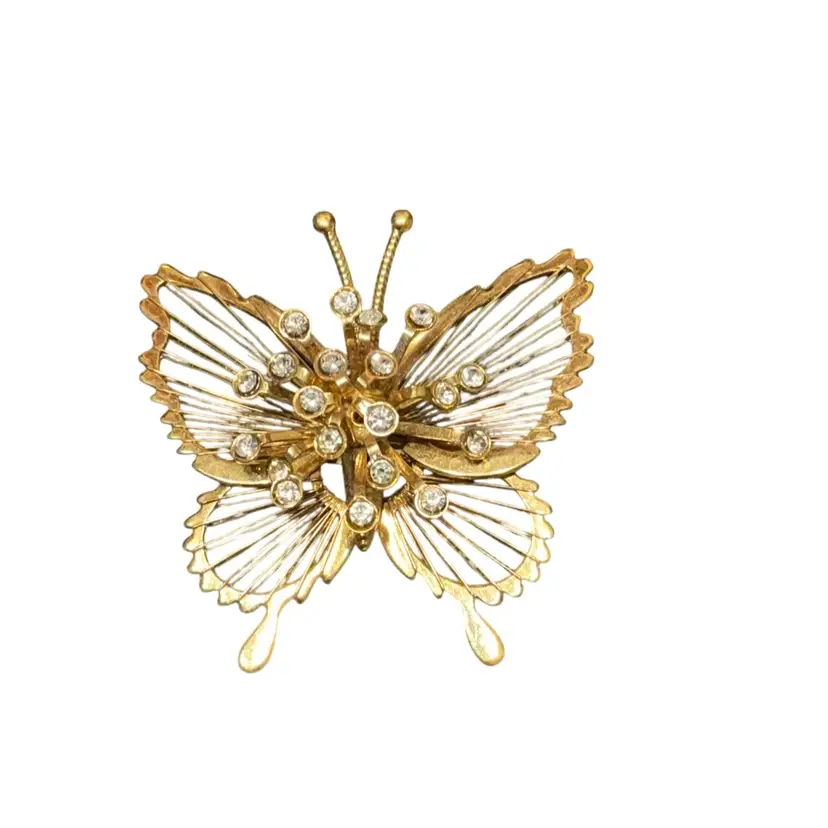 Measures 1.75”x 1.5”. The rhinestones are in starburst pattern in center. Good vintage condition.