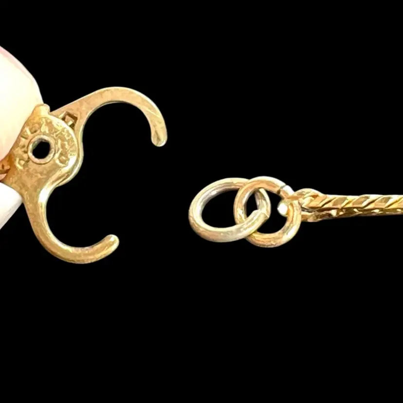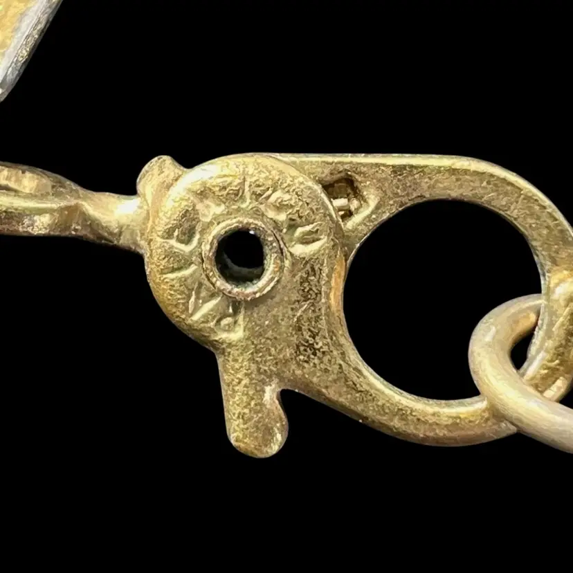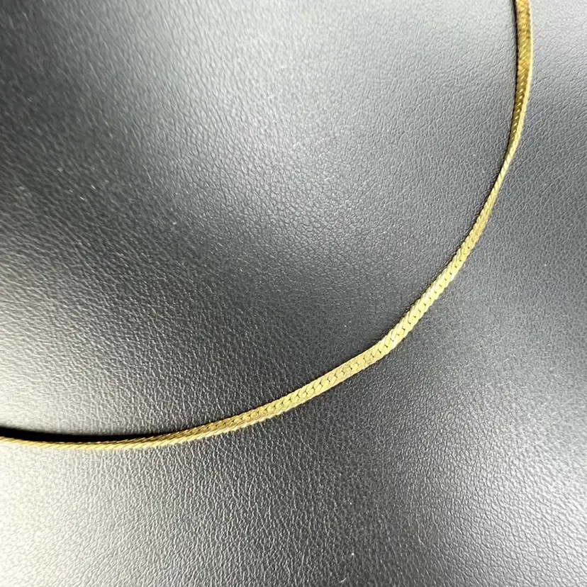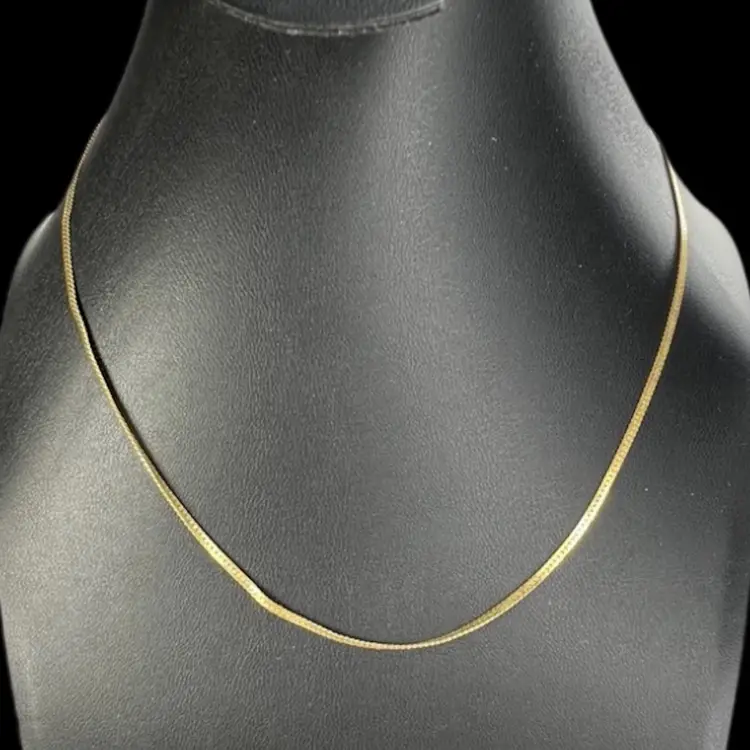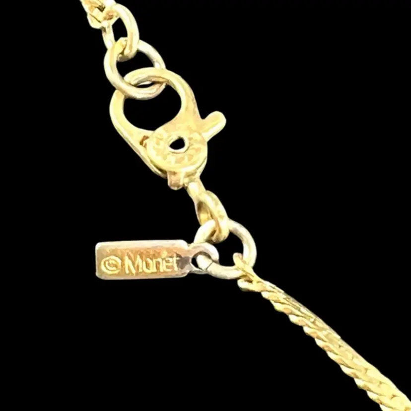 Vintage Monet Gold-tone Herringbone Chain. Unique Patented Lobster Claw Clasp Tag on clasp signed Lobster claw signed “Monet” with copyright symbol on one side & “Patented” on other 16-1/2” L x 1/16” W Condition: Good with light vintage patina; no gold-tone loss