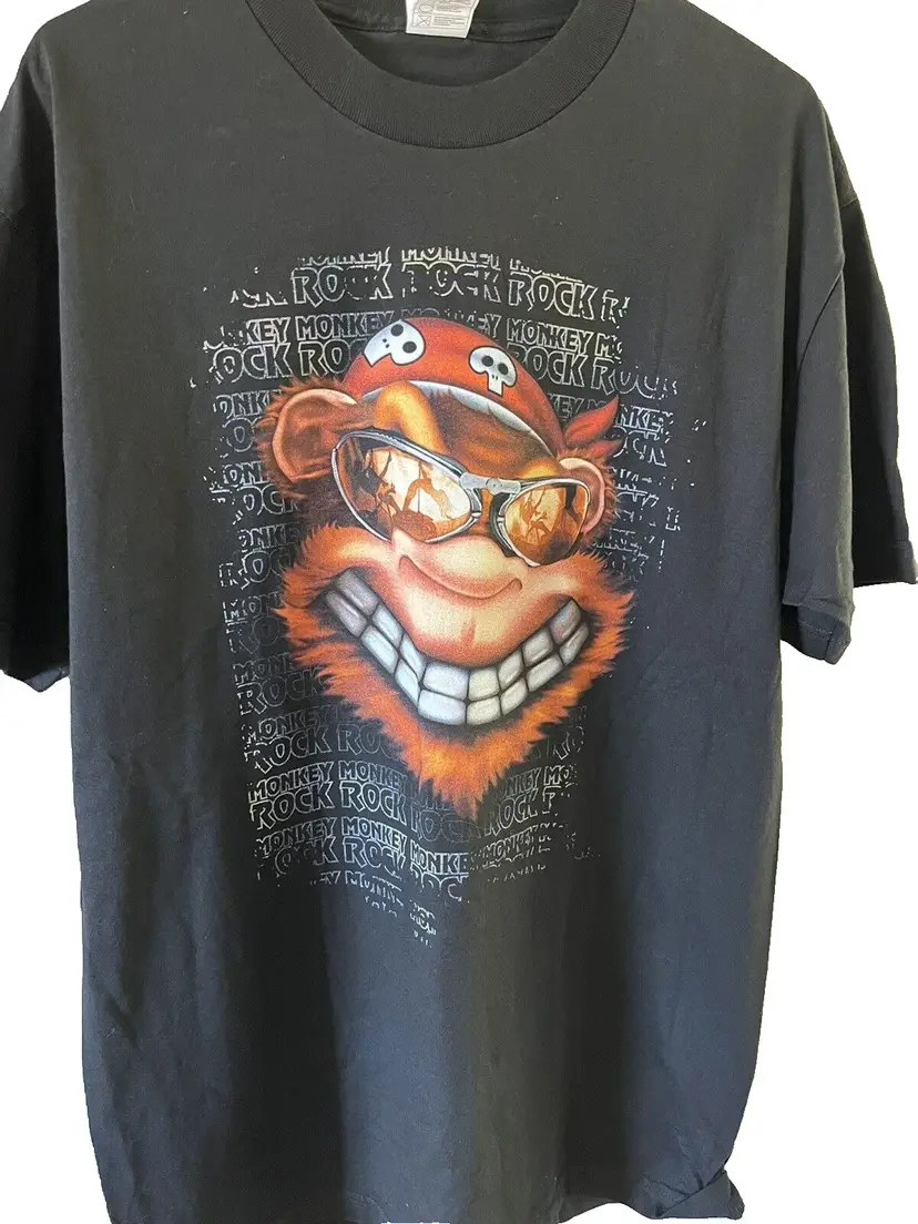Brand: AllStyle Fit: Regular Size Type: Regular Type: T-Shirt Department: Men Sleeve Length: Short Sleeve Character: Monkey Rock Size: L Color: Black with Graphics Theme: Biker