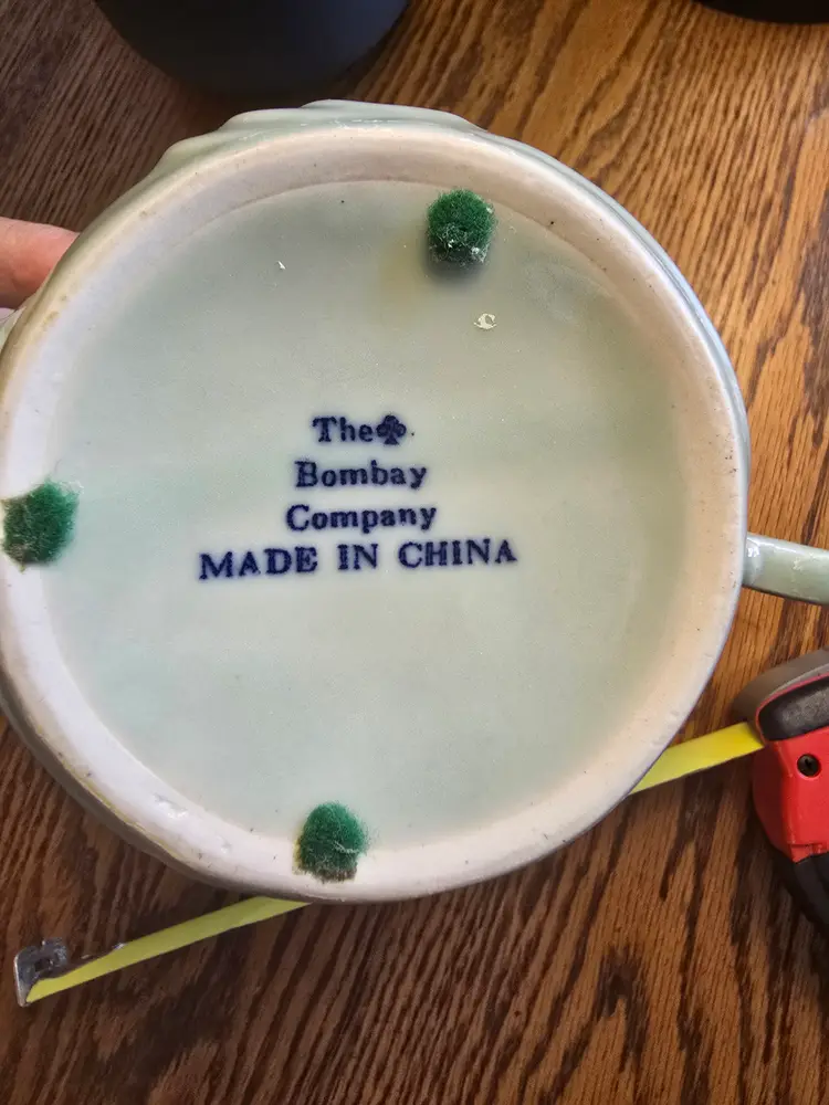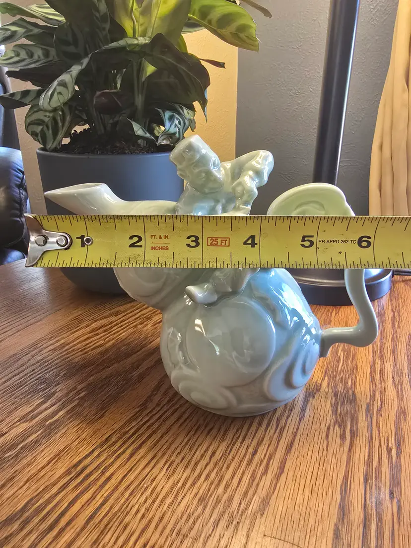 The Bombay Company Monkey Teapot made from Celadon Green Porcelain is a vintage tea pot with a unique design featuring a single compartment with no removable lid. This collectible piece is perfect for all occasions, adding a touch of elegance to any kitchen or dining room. Hand wash only to preserve its original charm and made in China with high-quality porcelain material. Ideal for collectors looking for a distinctive and stylish addition to their collection.