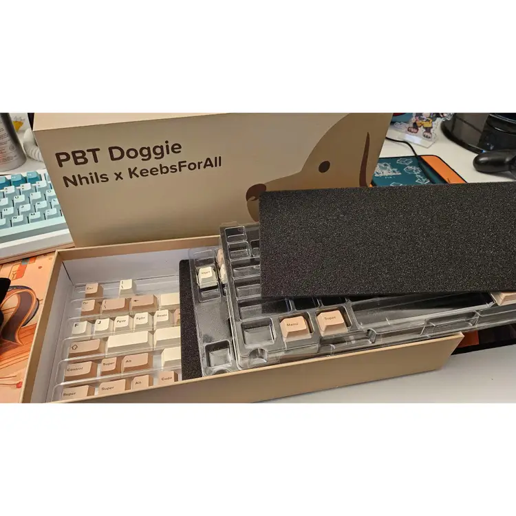 Very light use. Includes the rest of the PBT Doggie keycaps and the included keyboard cable.