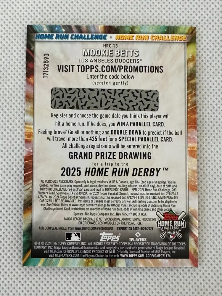 Predict and win home run challenge card