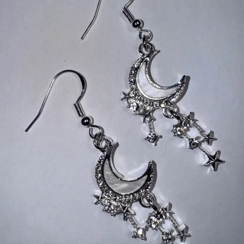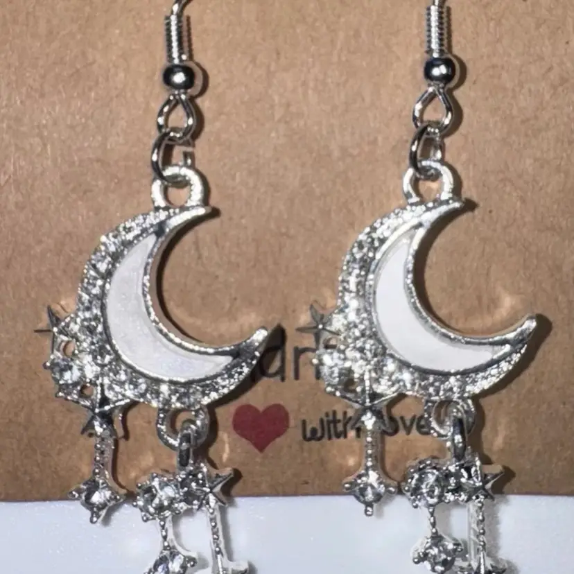 Moon & Stars Eclipse Charm Handmade Dangle/Fishhook Earrings