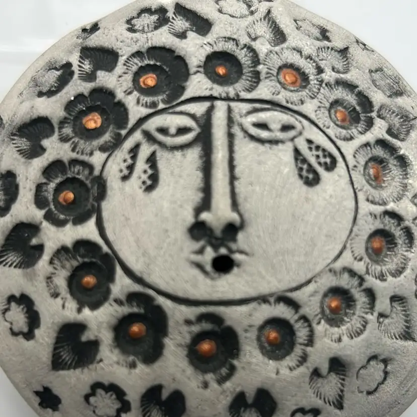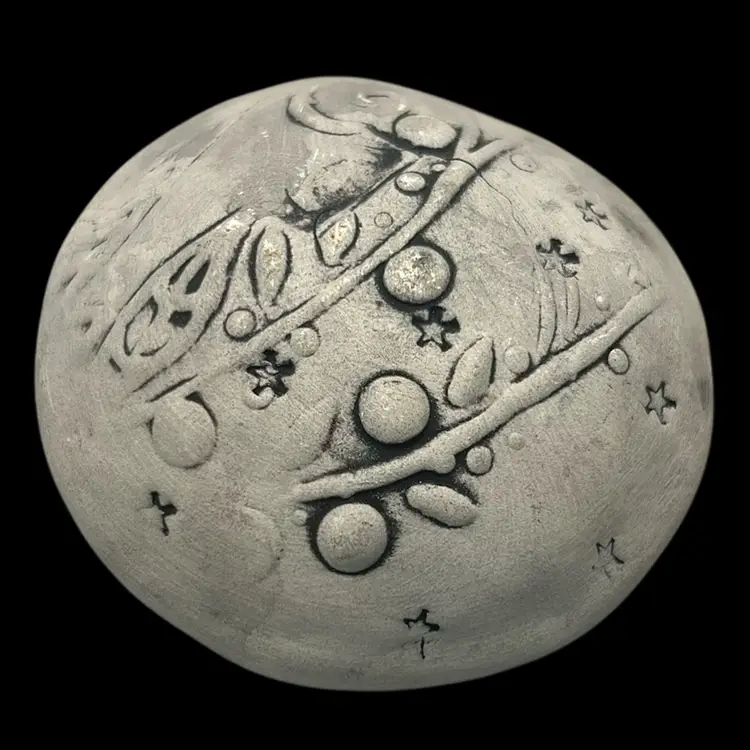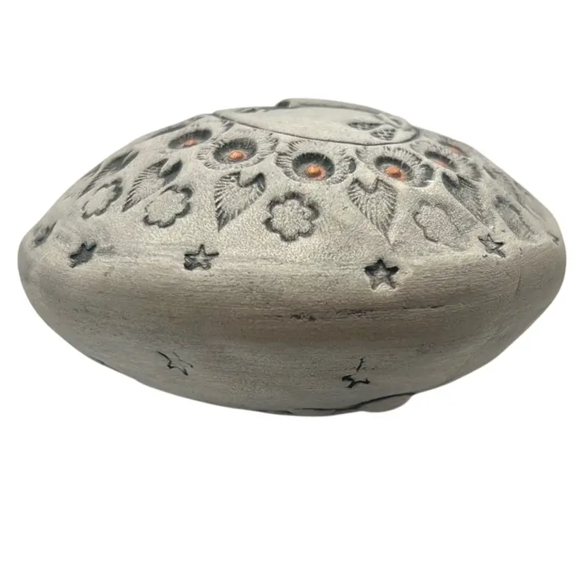 Handmade carved with moon face & stars. Ceramic filled with gentle noise making beads. No damage.