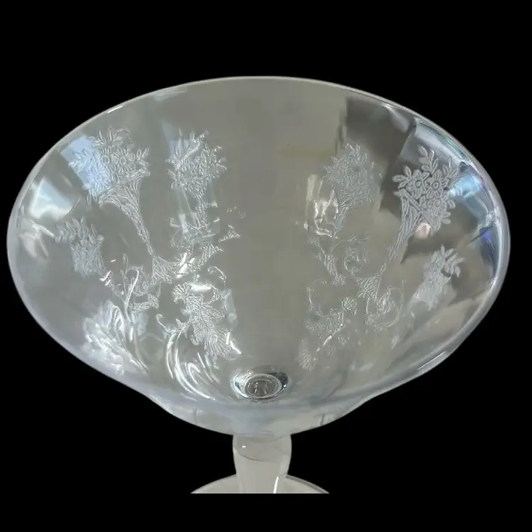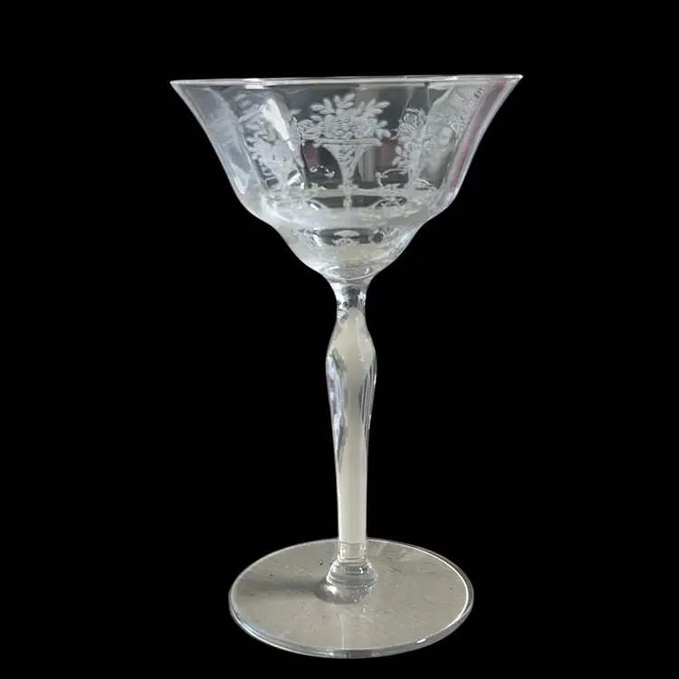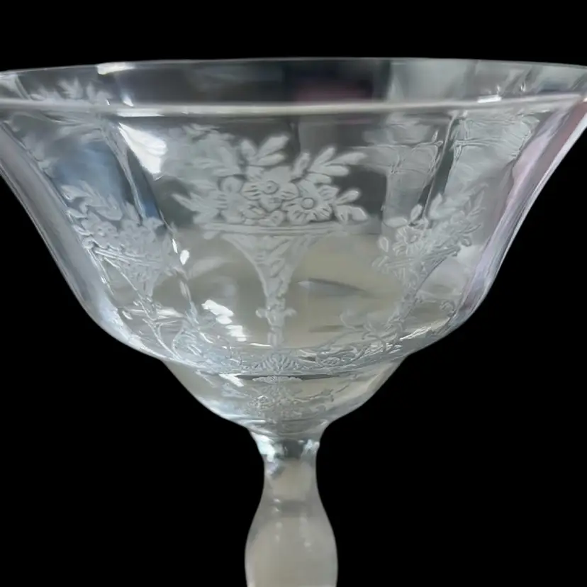 Vintage Morgantown Glass Mayfair Champagne/Tall Sherbet. This elegant floral bouquet etched glass measures approximately 5 1/2" tall x 3 1/2" wide Very good vintage condition, no chips, cracks, or repairs. (BSA*IC)