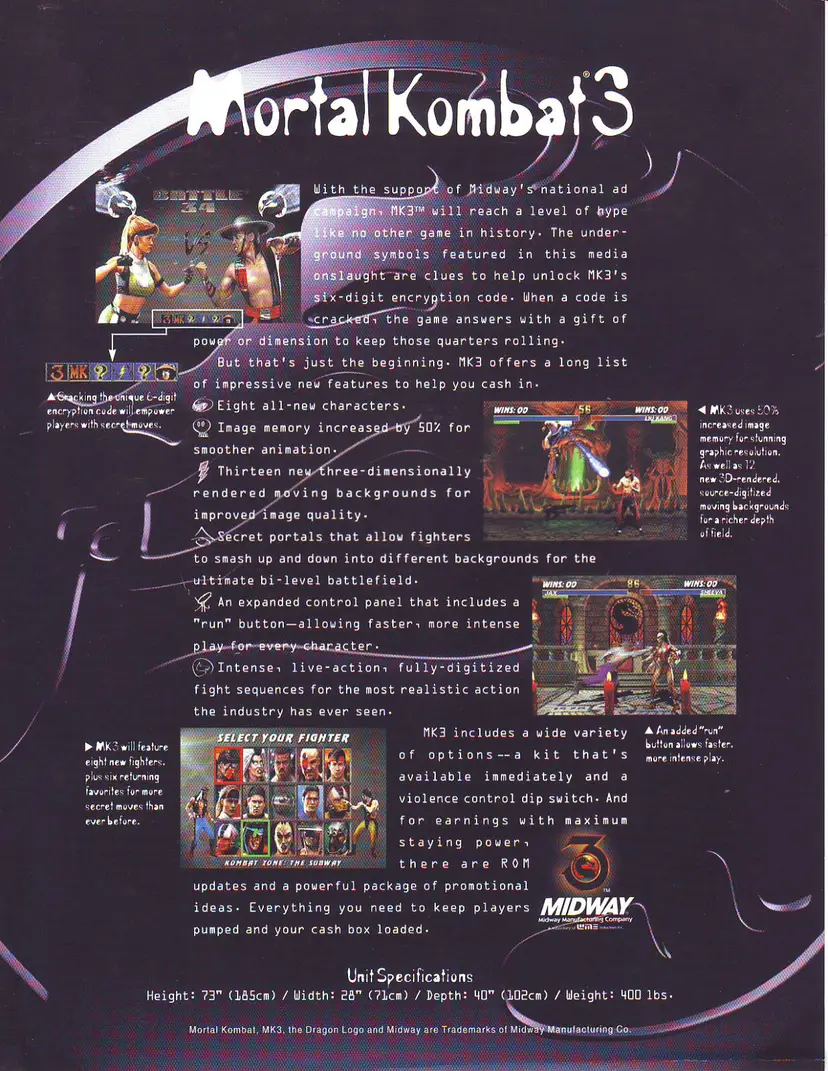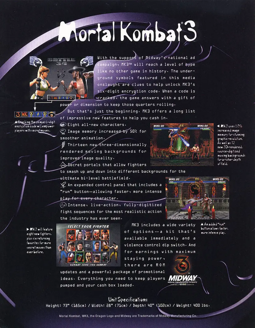 Arcade: Flyer Subject: Martial Arts Modified Item: No Country/Region of Manufacture: United States Original/Reproduction: Original Year: 1995 Game Title: Mortal Kombat 3 Brand: Midway