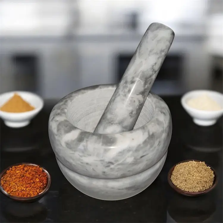 This Mortar and Pestle Marble Set is the perfect tool for grinding and crushing herbs, spices, and pills. Its classic design and natural marble material make it both functional and elegant, while its sturdy construction ensures long-lasting use. Experience the benefits of precise grinding with this essential kitchen tool.