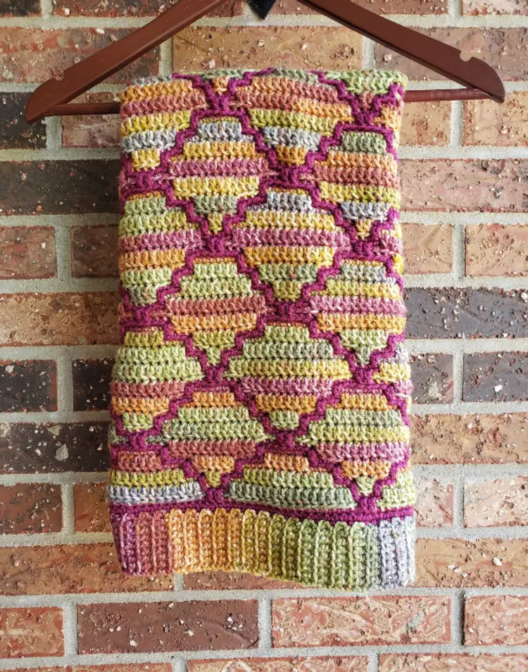 This beautiful mermaid scale blanket is done in the warm and rich colors of Cinnamon Cedar and Cranberry. It's made in the mosaic crochet style, where stitches are worked over each other to create a unique textured effect on both sides of the blanket. The result is a stunning and cozy blanket that will keep your little one warm and snug.