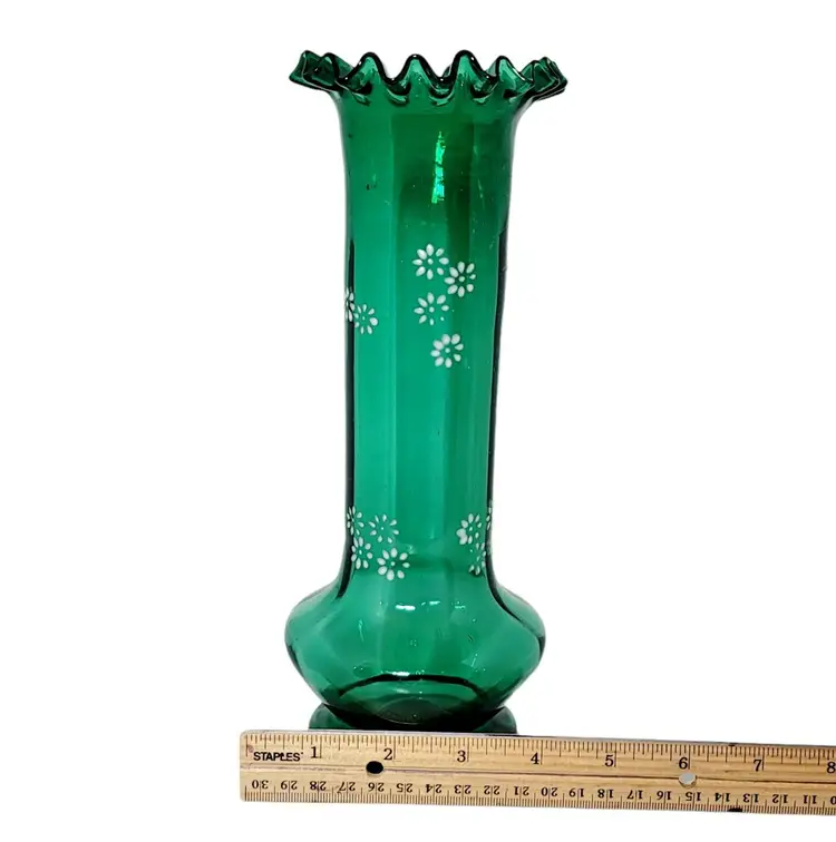 – Brand: Moser – Pattern: Ruffled – Type: Vase – Color: Green – Style: Bohemian – Material: Glass – Features: Hand Painted – Production Technique: Hand Blown Glass – Country/Region of Manufacture: Czech Republic