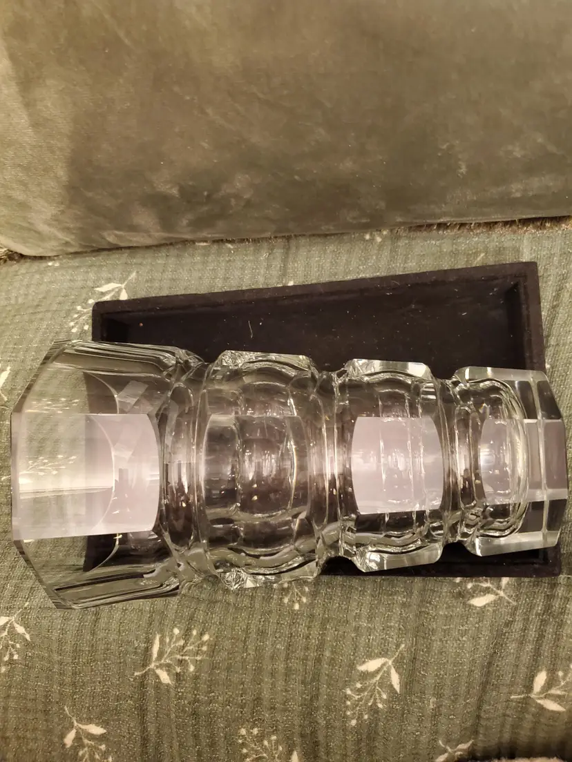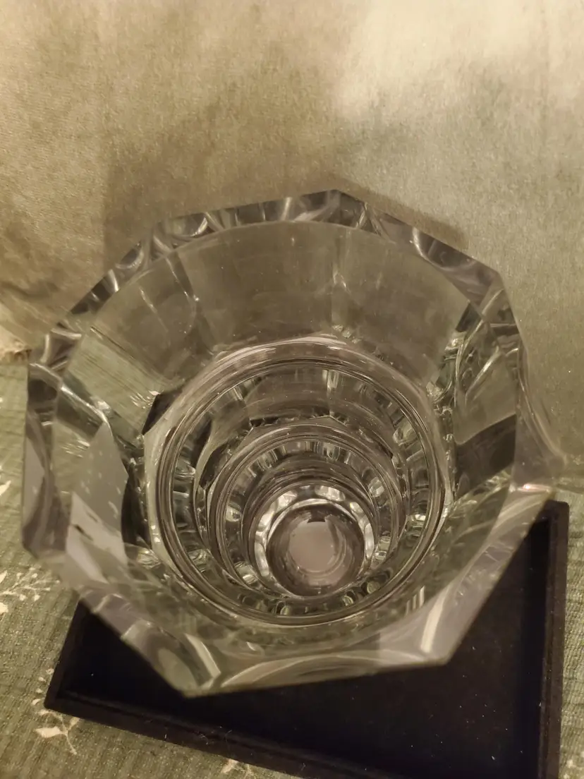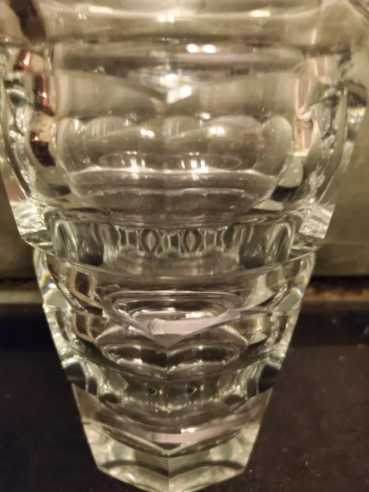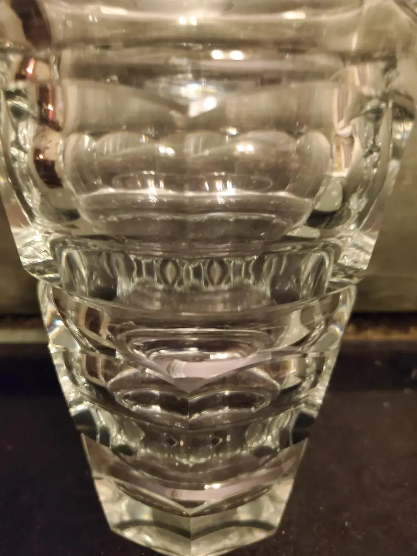 Gorgeous! Crystal faceted vase. No chips or cracks. 7 1/2" tall by 5" wide. *sorry about the shipping, it weighs 4 pounds.