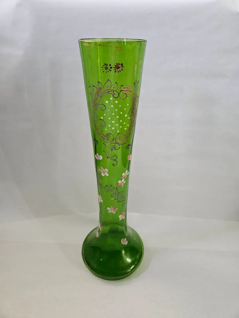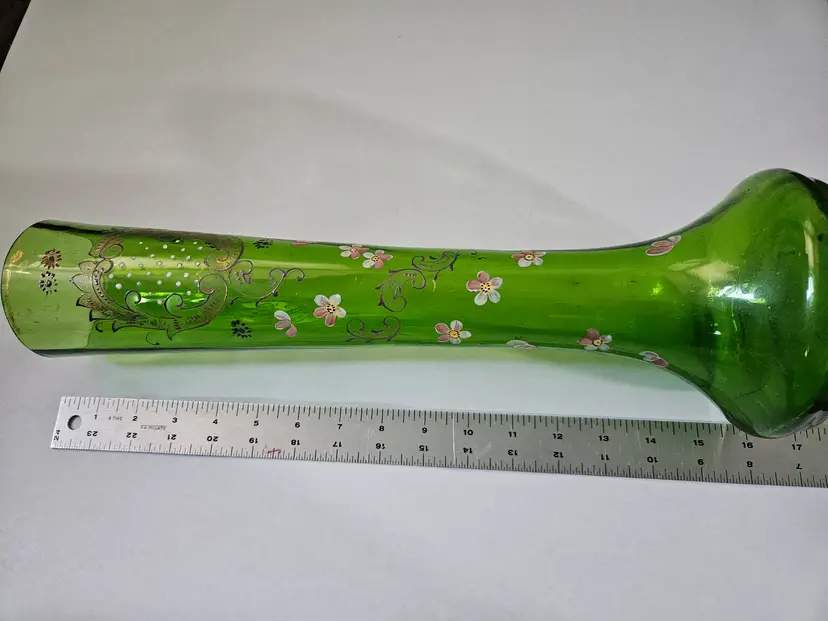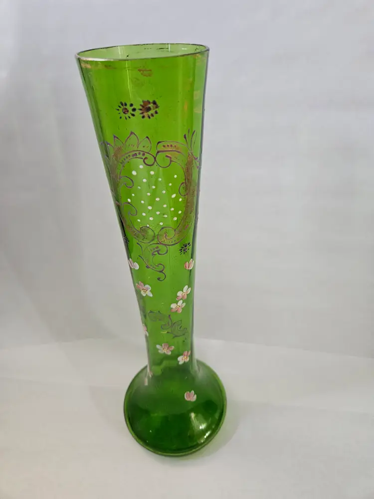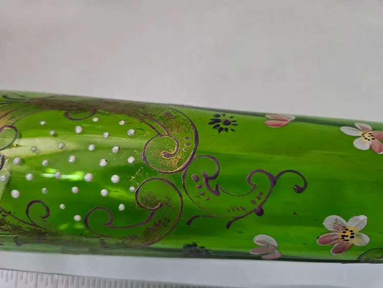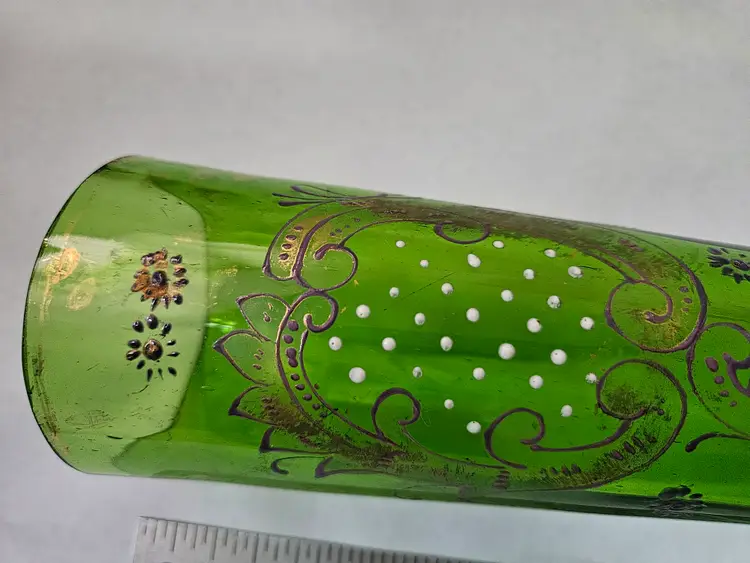 Lots of wearing and OLD. Sold to me as uranium glass - it's not. BUT - very vintage.