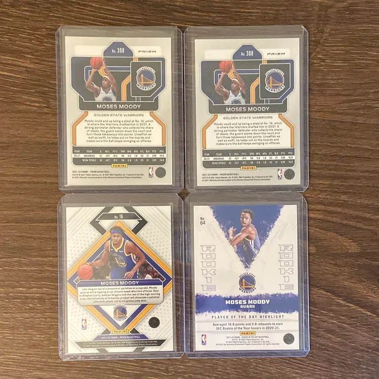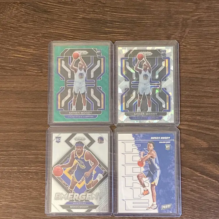 Lot of 4 Moses Moody RCs: Prizm Green Wave Prizm Cracked Ice Prizm Emergent Panini Player of the Day