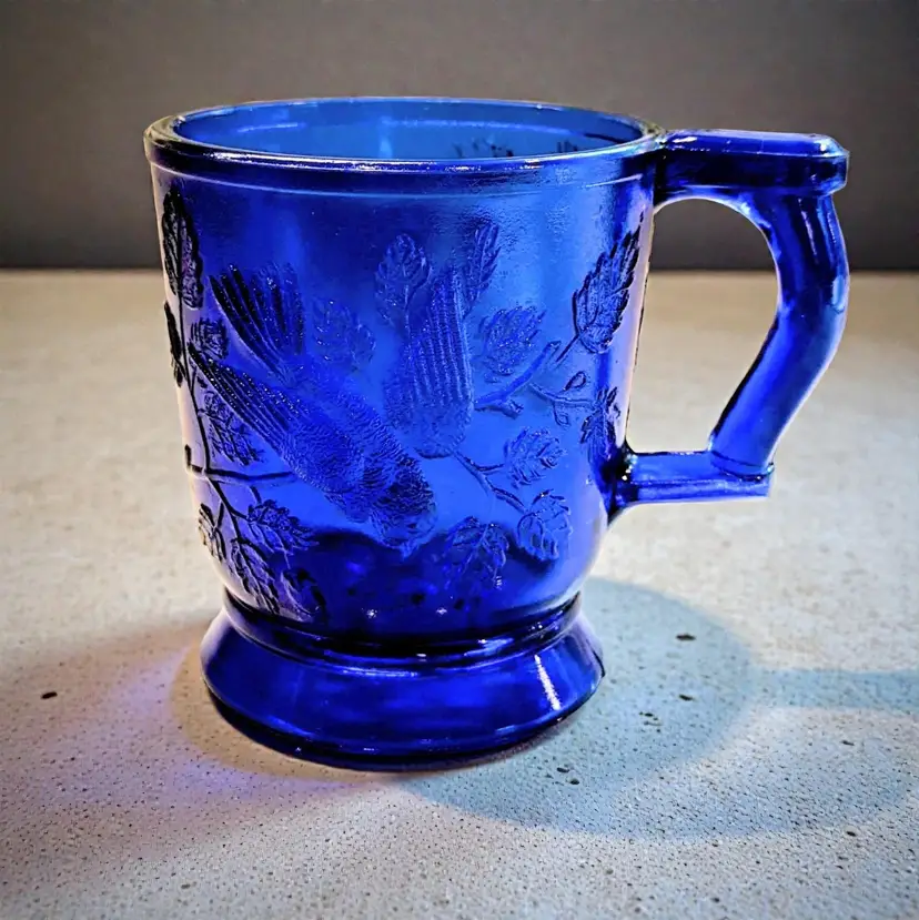 No chips or cracks Origin: Cambridge, Ohio Item Height: 3 3/4" Pattern: Robin in a Tree Brand: Mosser Glass Time Period Manufactured: 1970-1979 Product Line: Bird in a Tree