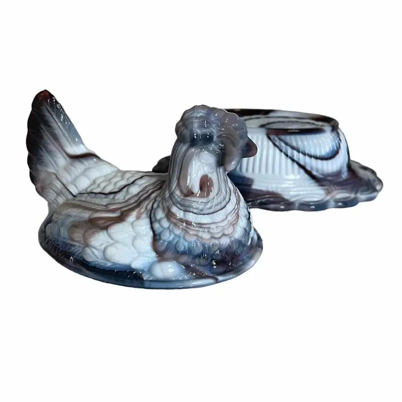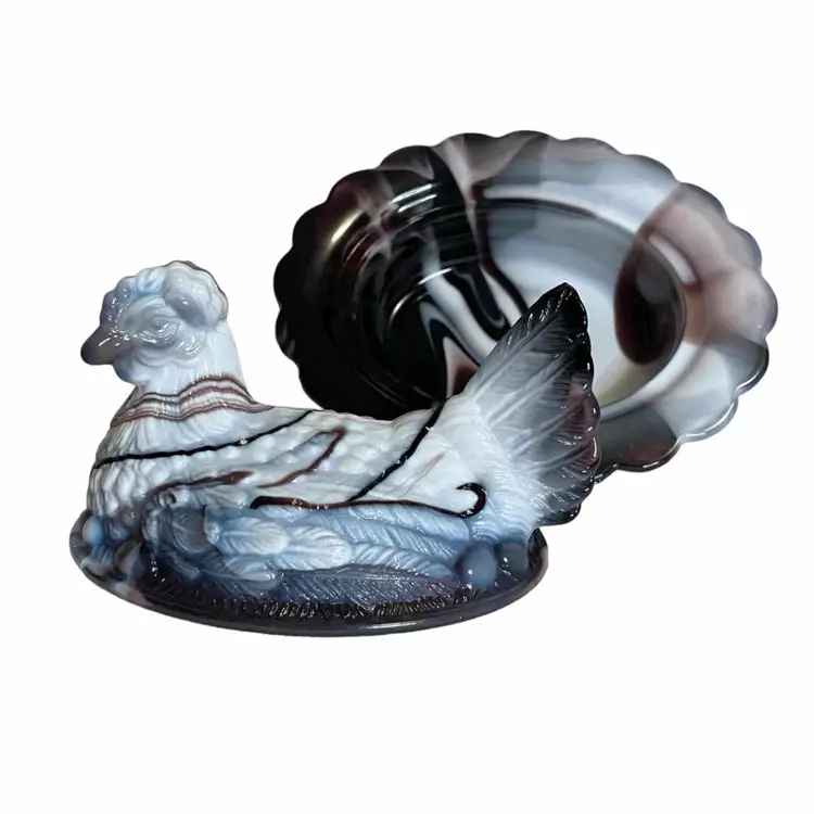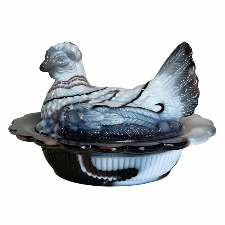 Mosser Purple Slag Glass Hen On Nest Nicely Detailed Feather And Egg Design Split Tail Design Marked With M 4.5"×5.5"×7"