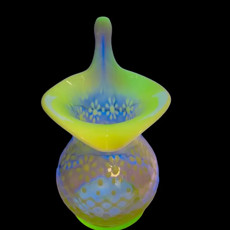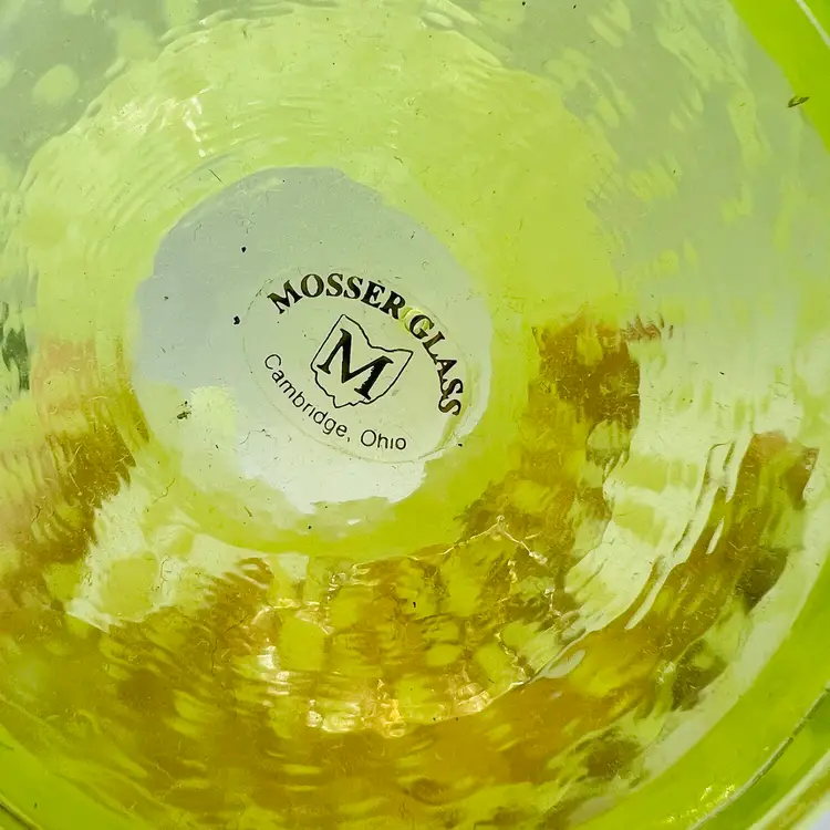 Stunning, super glow and hard to find! This mould is owned by Mosser now- it previously belonged to LG Wright and was poured by Fenton.