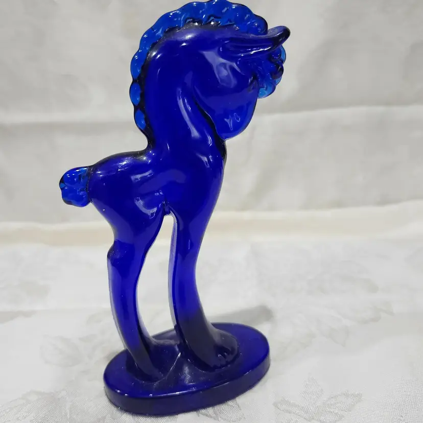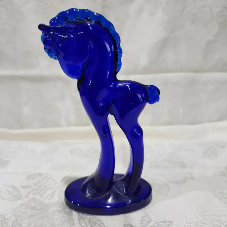 Mosser Vintage blue cobalt trojan horse 1981 retired. signed 5 1/2 " tall
