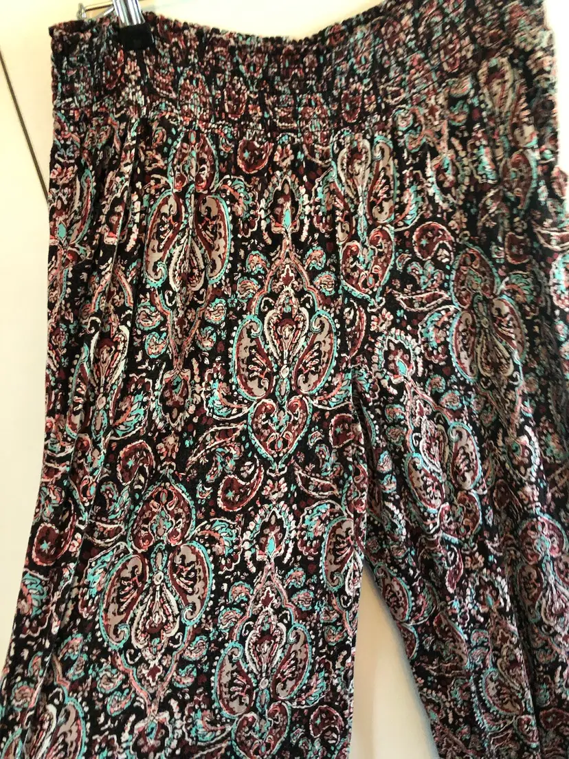 Mossimo Supply Company 2XL wide leg flowy pants. Wide 30" elastic waist, 34" inseam. 26" wide leg opening Rayon Spandex blend good preowned condition.