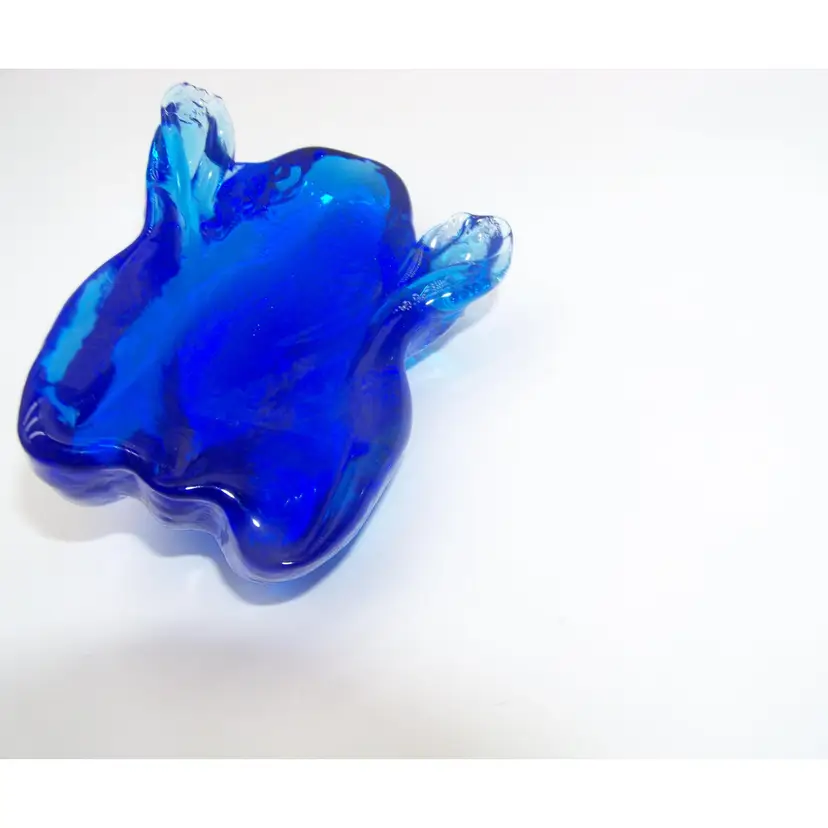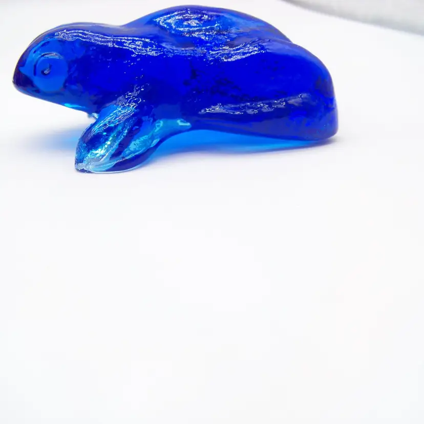 Vintage Blenko cobalt blue frog paperweight. He does have a very small chip on his front right foot as shown in photos. He is 1.75" tall,3.75" long, and 2.25" wide.
