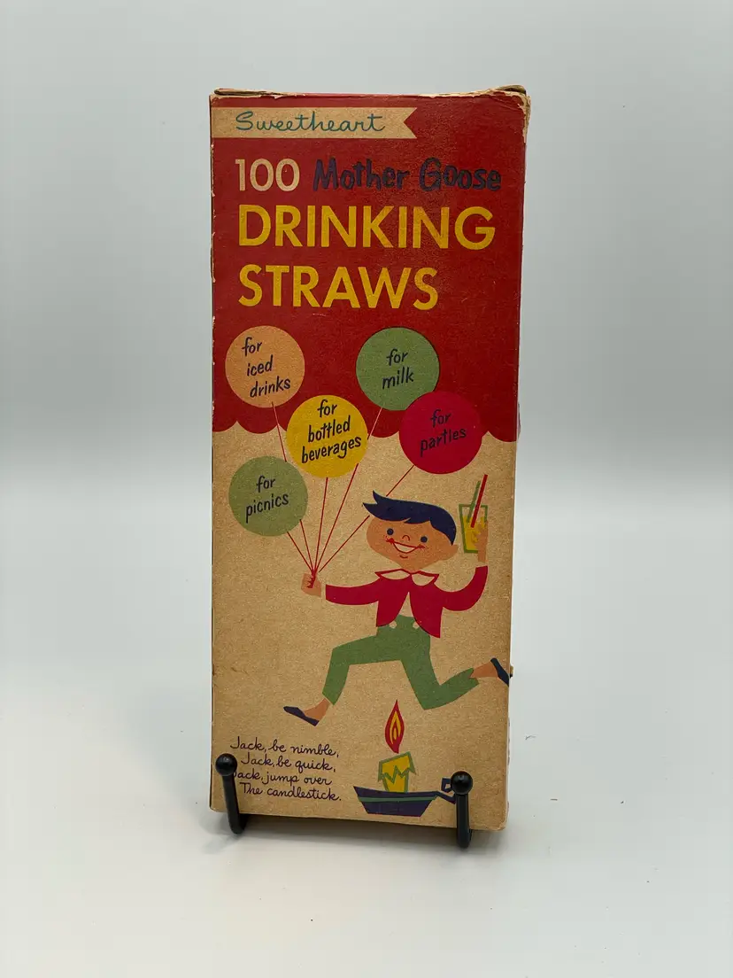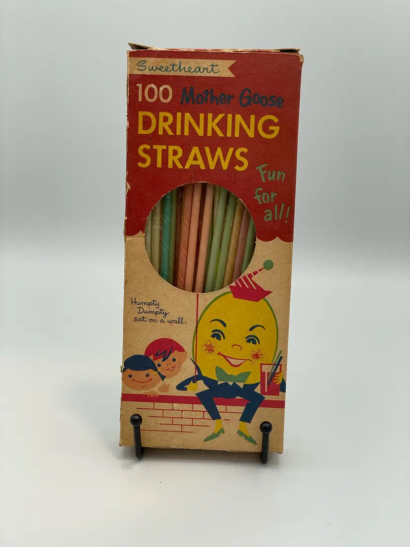 Vintage Mother Goose Humpty Dumpty Drinking Straws In Original Box.
