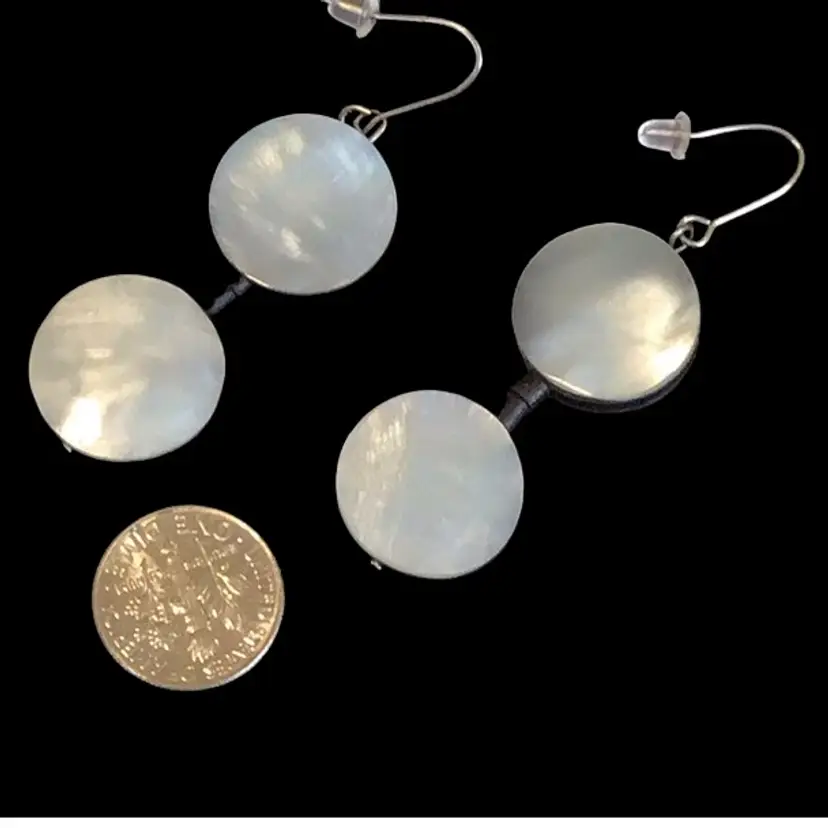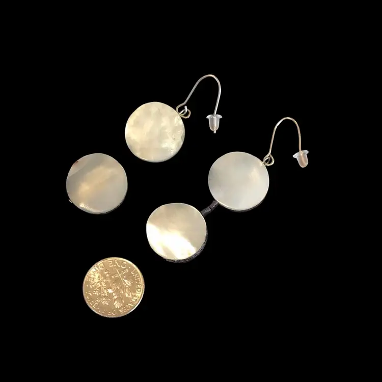 2” drop mop double coin size dangles, silver tone French ear wires. #350
