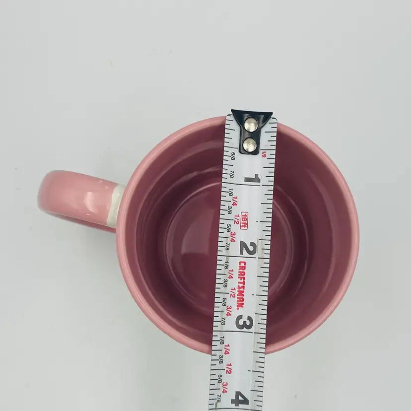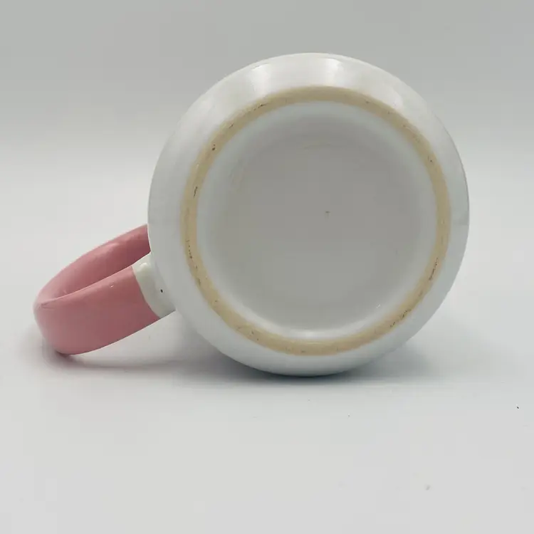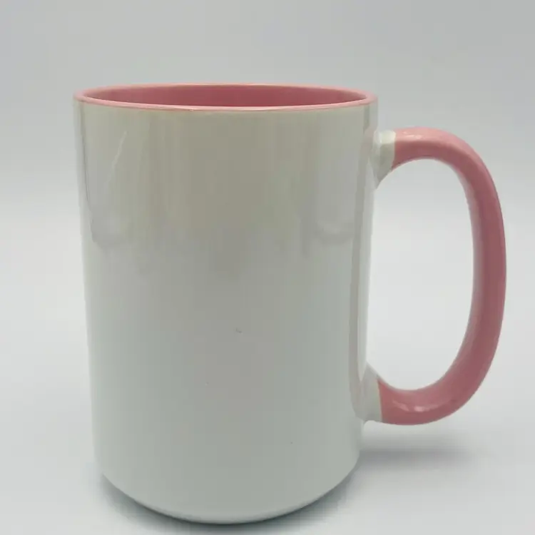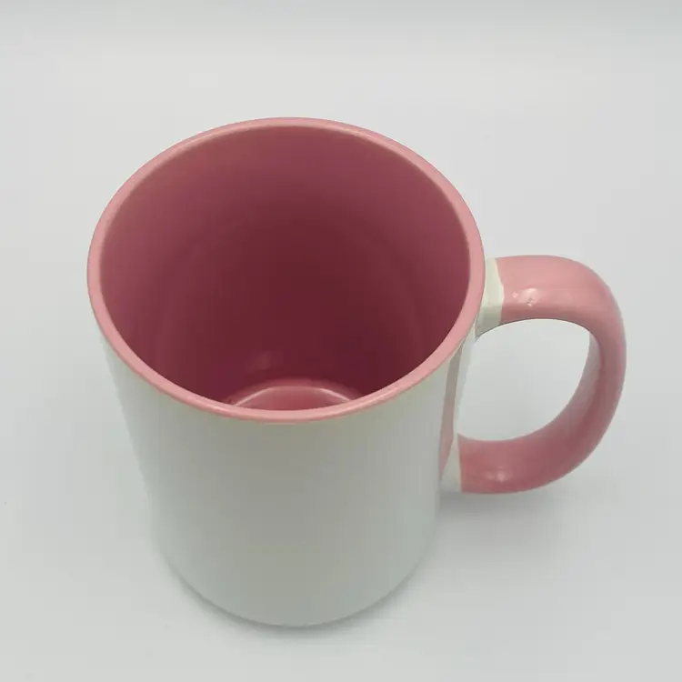 Sublimated on a blank two-tone ceramic mug and holds 15 fl oz. The inside and handles are pink and white where the design sits.