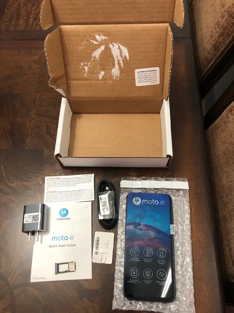 📱 Motorola Moto E – 32GB – 4G LTE – Brand New 🔒 Locked to Verizon (officially locked, some buyers have used it with international SIMs) 📦 Caja sellada, nunca usado ✅ 6.2” HD+ Display ✅ Dual Rear Camera 13MP + 2MP / Front Camera 5MP ✅ 32GB Storage (expandable) ✅ 3550 mAh Battery