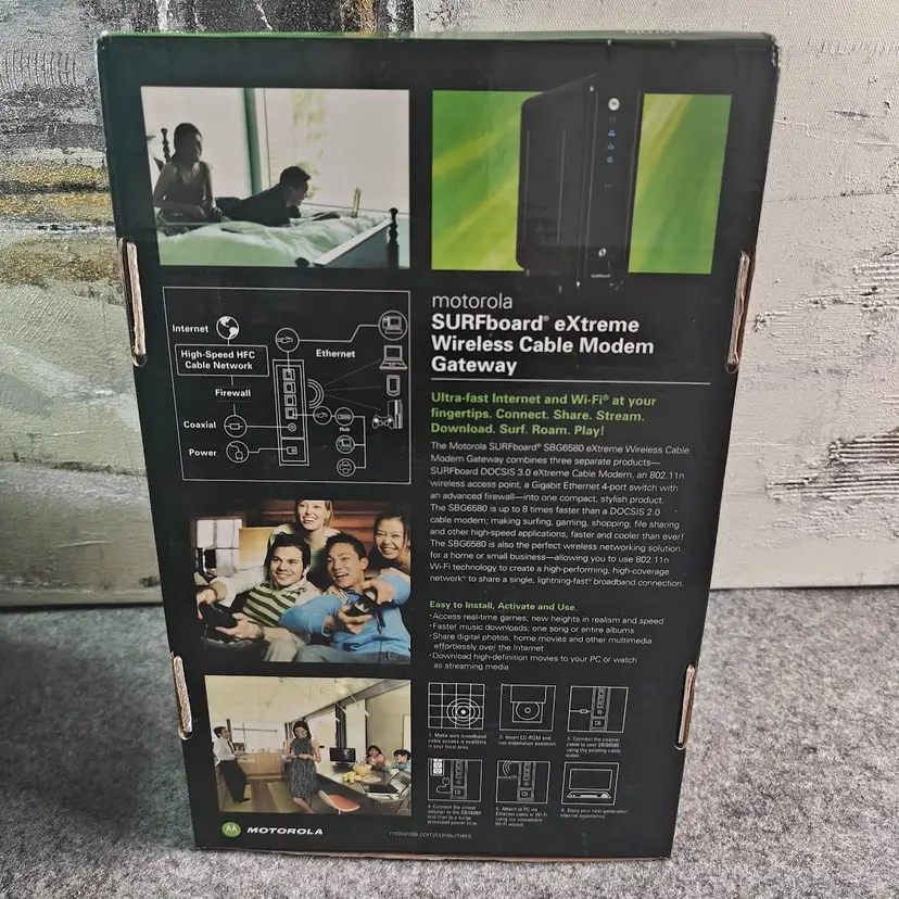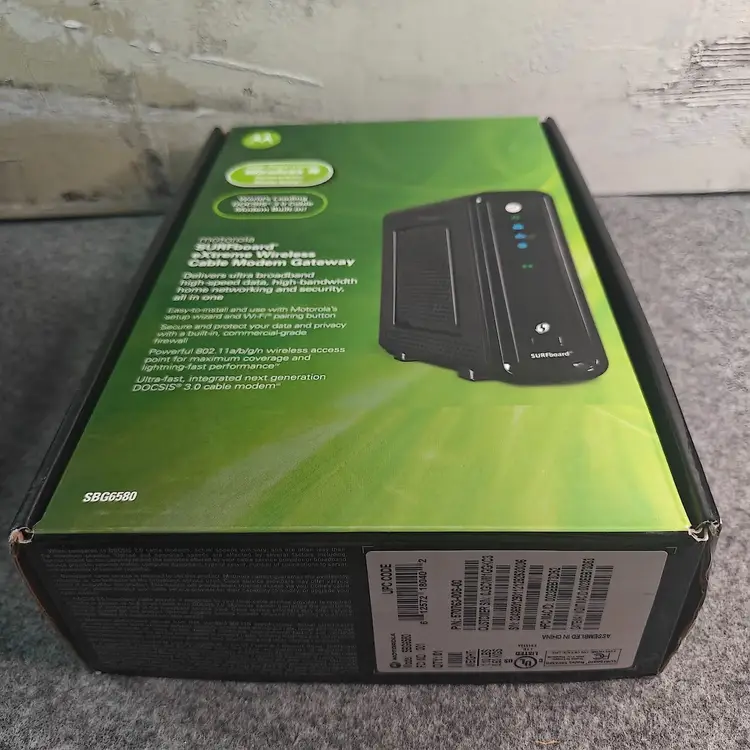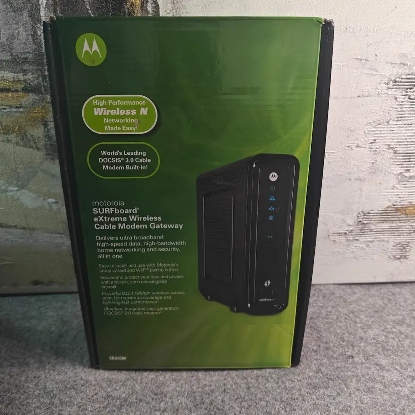 Description: The Motorola SBG6580 DOCSIS 3.0 Wireless Cable Modem Router Gateway combines a high-speed cable modem with a wireless router in one convenient device. Perfect for home or office use, it delivers reliable internet speeds and secure Wi-Fi connectivity.