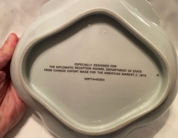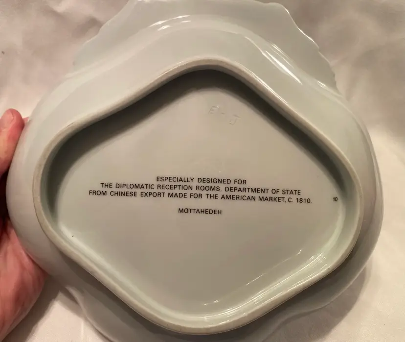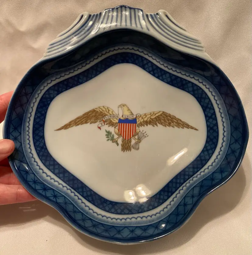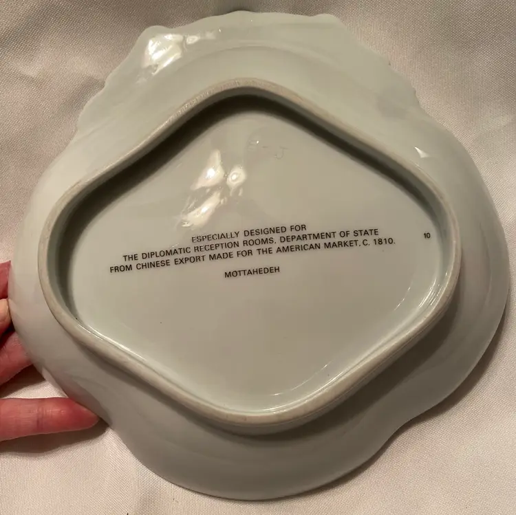 Mottahedeh E Pluribus Unum Diplomatic Eagle Scalloped Dish Designed for diplomatic reception rooms department of state Measures approximately 8.25”