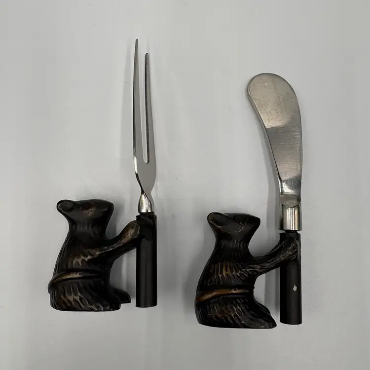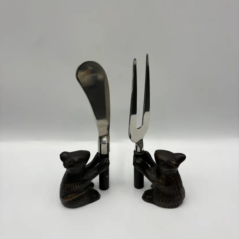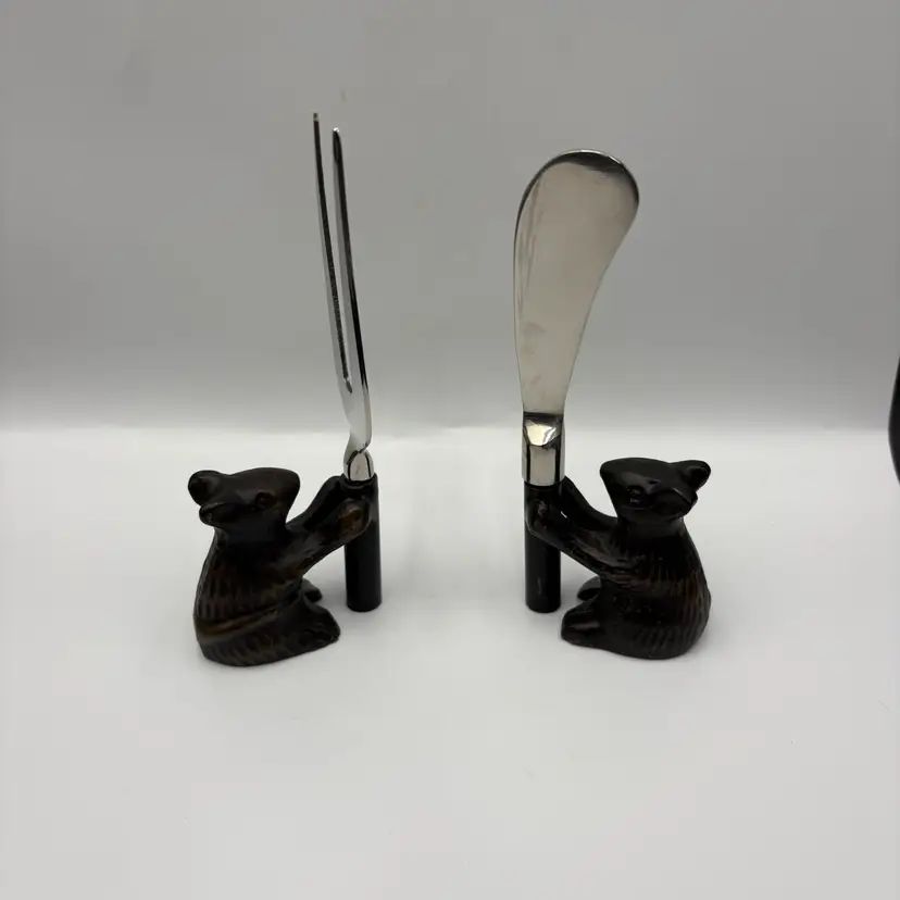 Metal over resin? There is a chip on one handle. See photos. Possibly Pottery Barn.