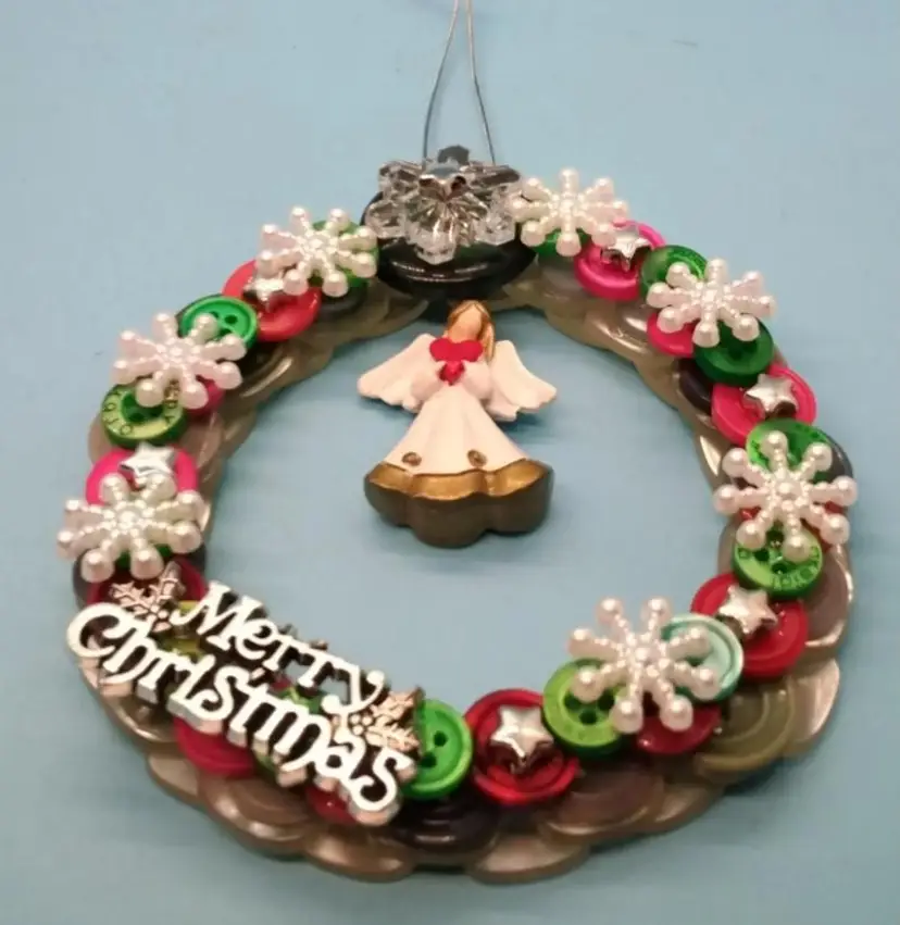 Handmade Christmas Button Wreath Ornaments, Choice Sale