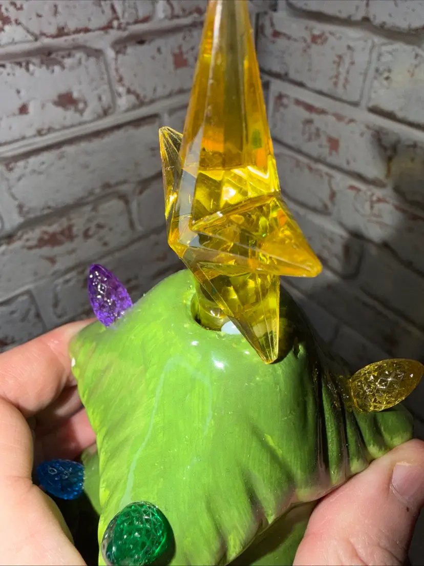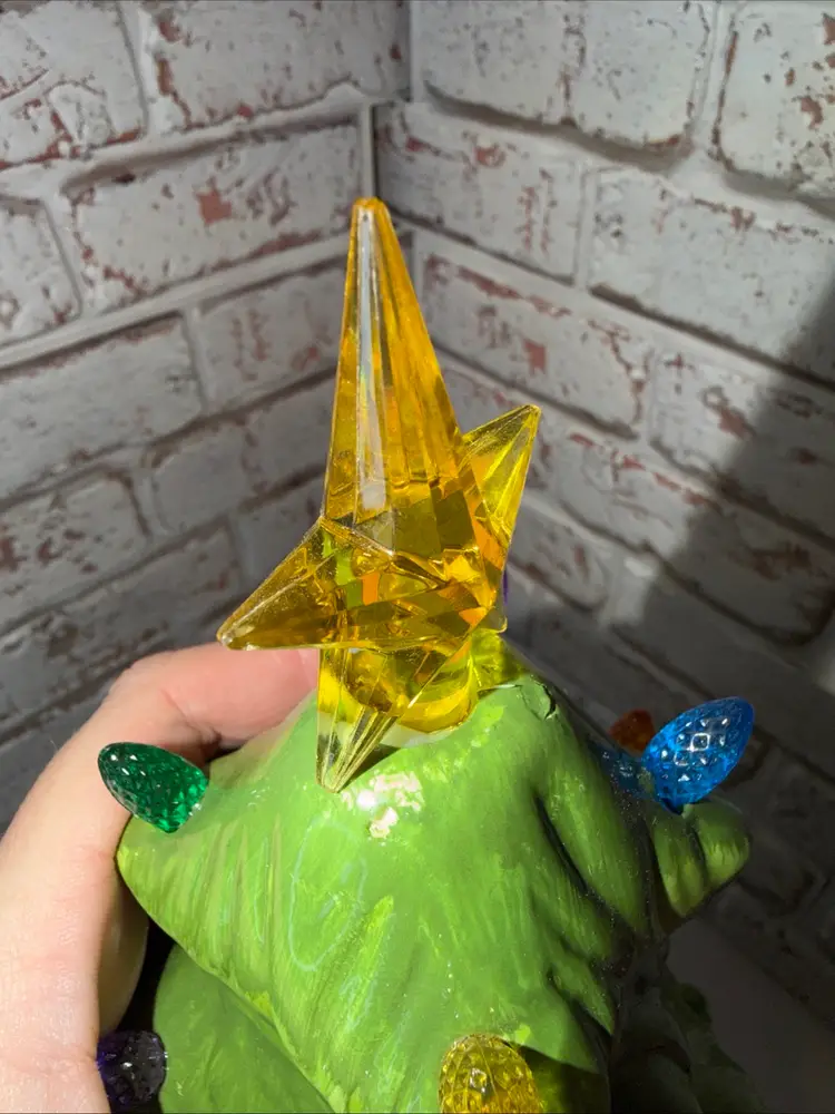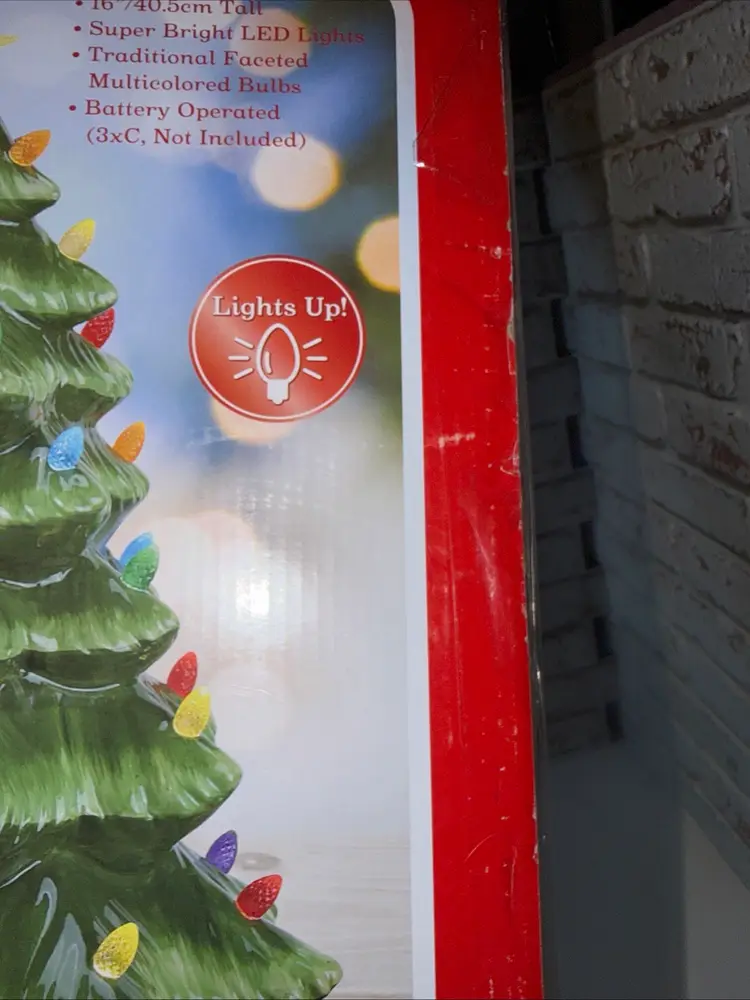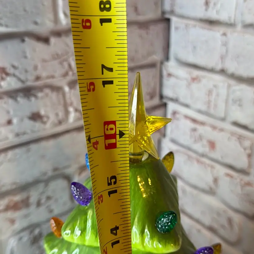 Measures 16” tall on the box but to the star measurements 17” there is paint loss and chipped. And box come as is torn and been tape. I don’t have batteries but I did use this 2 or 3 years ago and it work and I never leave the batteries in at all so no batteries will come with this