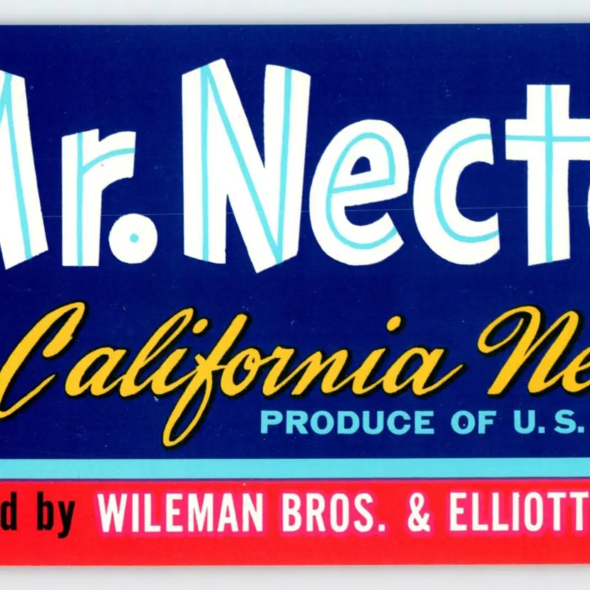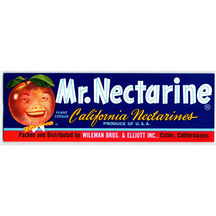 Super cool graphics on this 11" x 3.5" unused old stock condition fruit crate label. Super clean vintage condition.