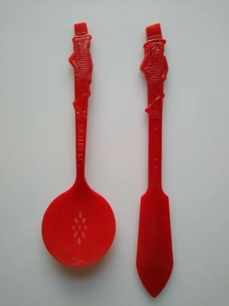 Type of Advertising: Spreader & Nut Spoon Modified Item: No Country/Region of Manufacture: United States Theme: Candy & Nuts Original/Reproduction: Original Featured Refinements: Mr. Peanut Date of Creation: 1950s Color: Red Brand: Planters Nuts