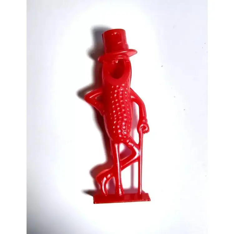 Unused old stock. Original Planters Peanut red color promo figure plastic toy whistle. Has great embossed details. Excellent vintage condition. Size is 2.5" tall.