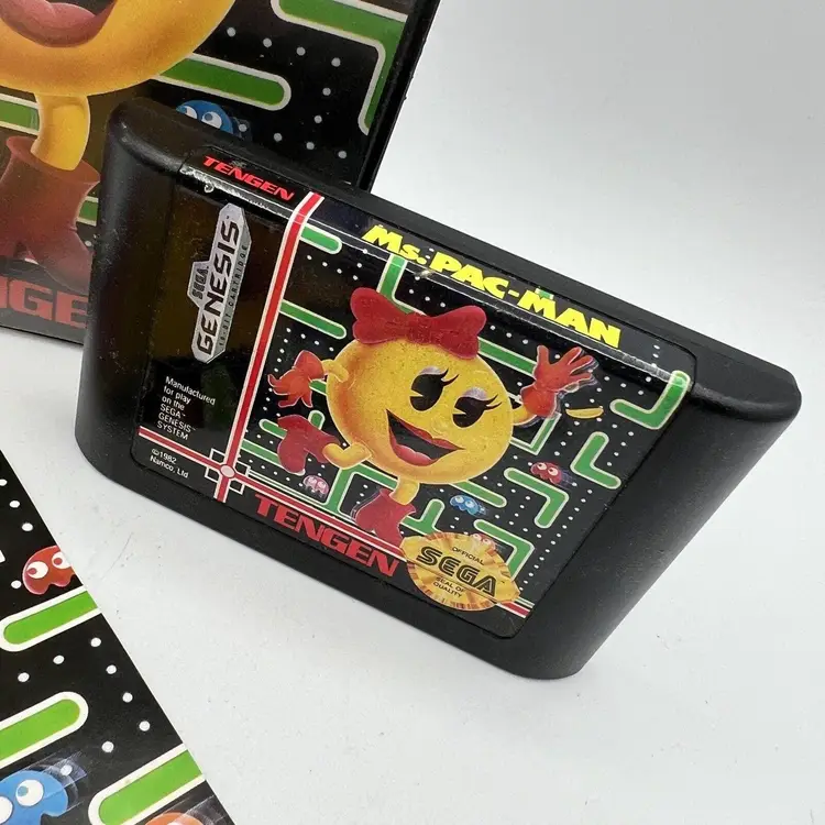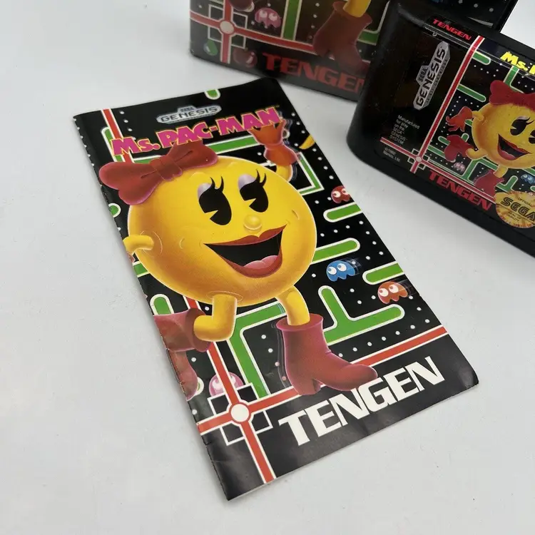 Ms. Pac-Man Sega Genesis 1991 Tengen Book Case Cartridge Works