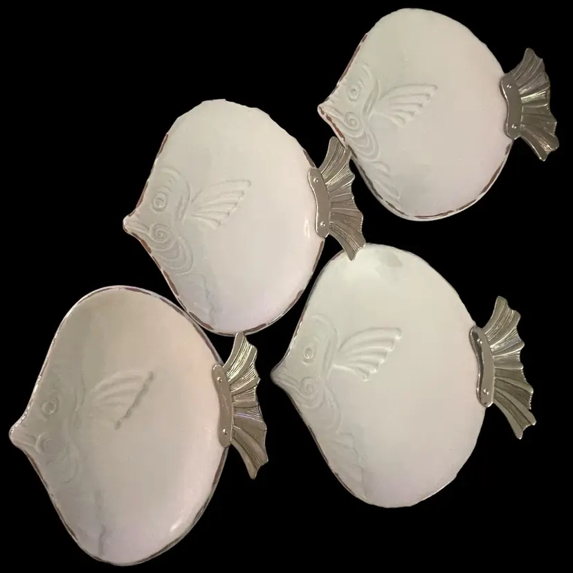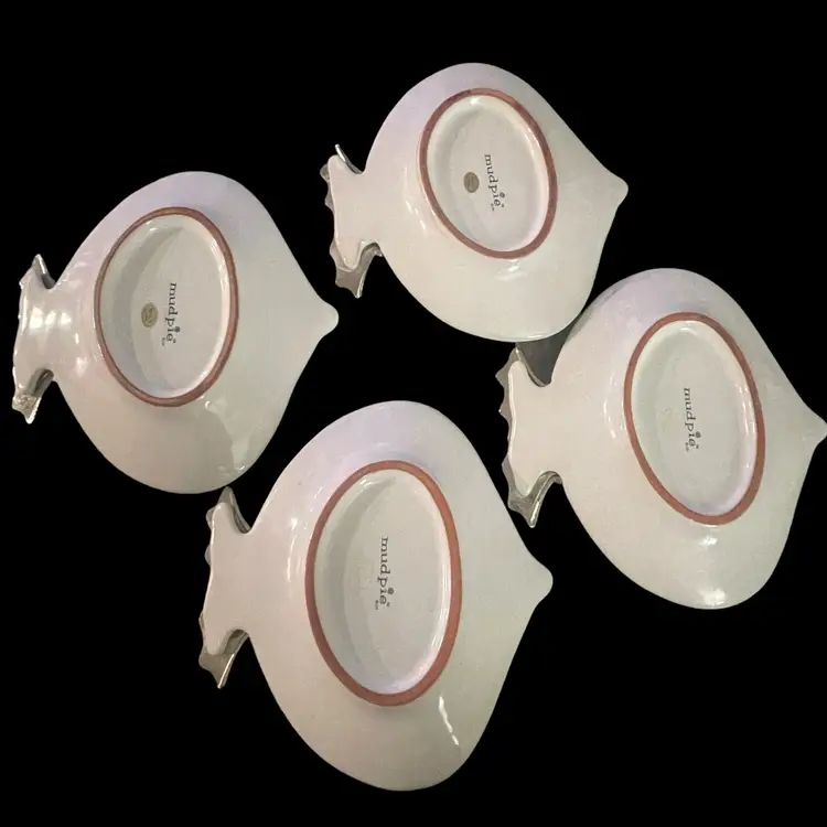 White glaze over terra cotta plates perfectly sized for appetizers or for use as soap dishes throughout the house. Since there’s 4 of them, mix n’ match them throughout the house or kitchen for different uses!