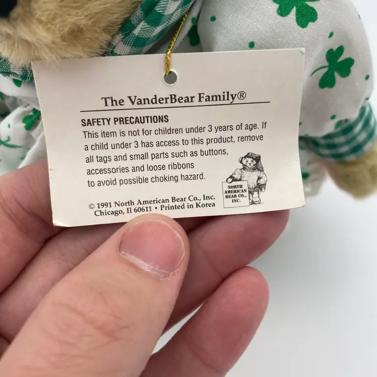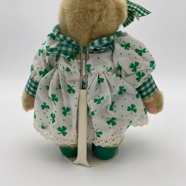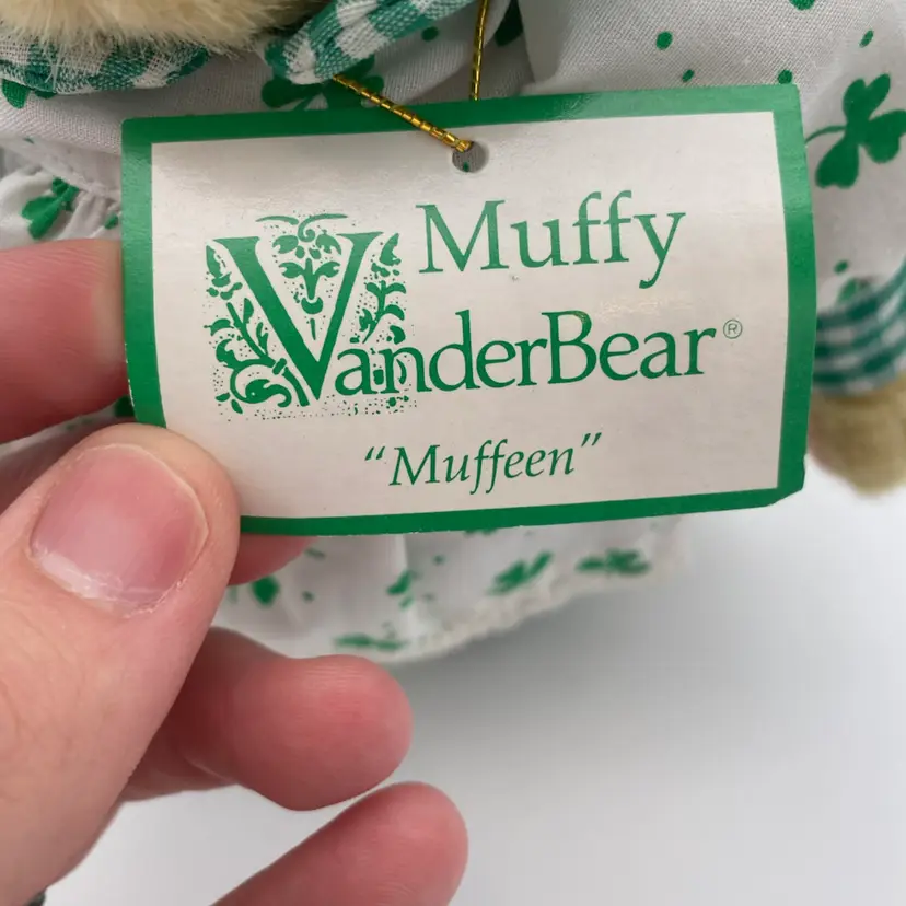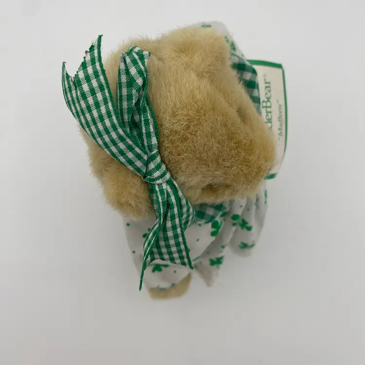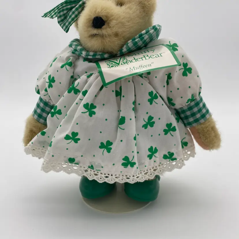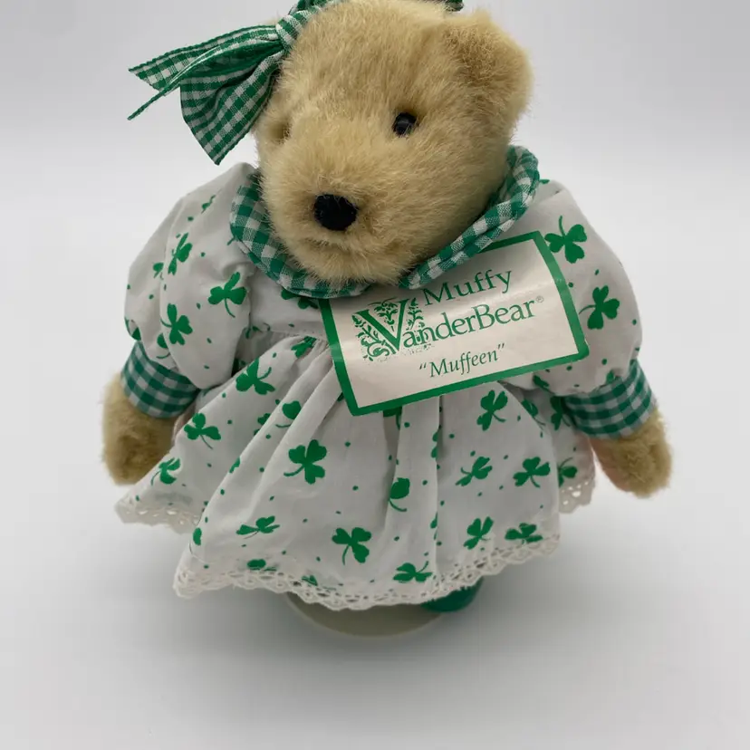 You are purchasing one Muffeen St. Patricks Day Themed 8" Plush Bear by North American Bear Company and their 1991 Muffy VanderBear Collection. This Bear includes a dress and stand, as well has its original tags.
