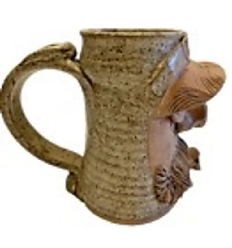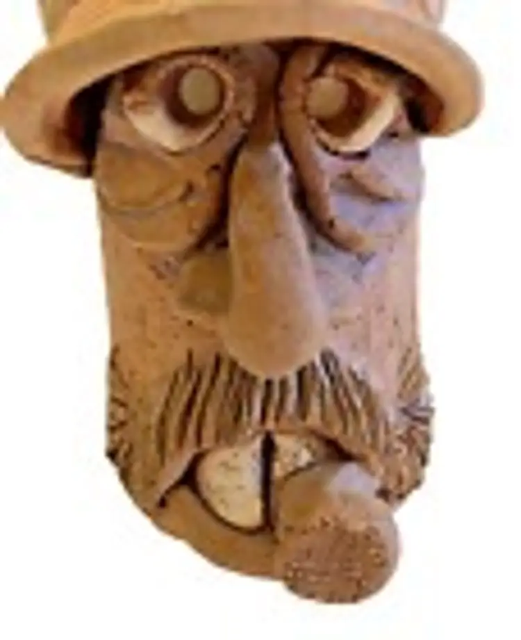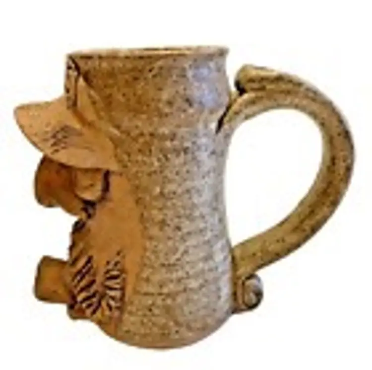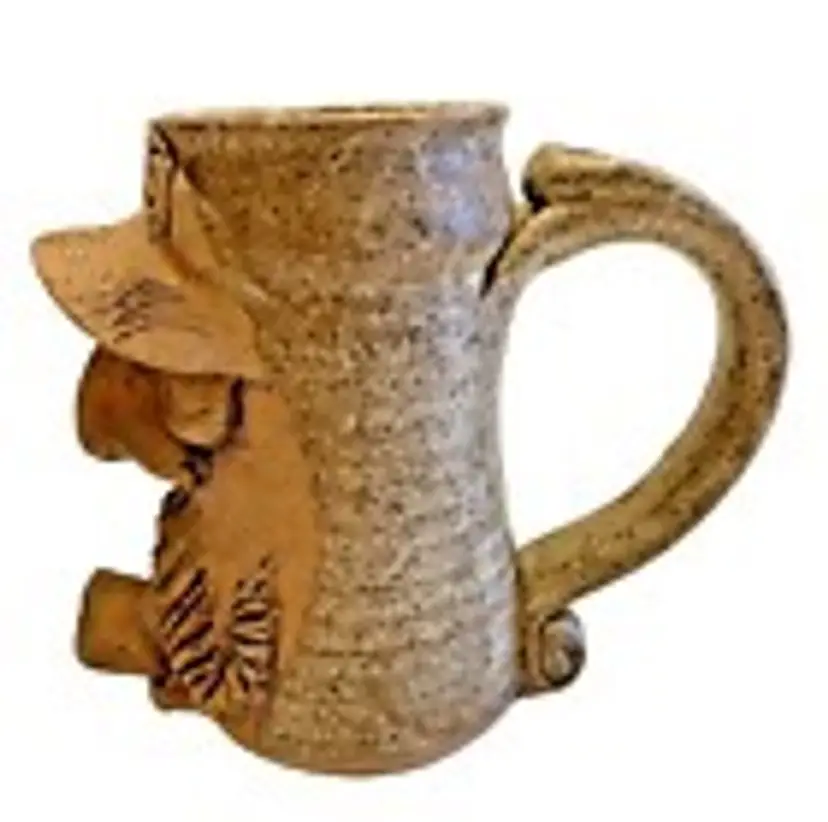 This listing is for an Ugly Face Pottery Mug. It stands about 5 1/4 inches tall. It has U. 7th S. on the rim of the hat. There is a penny inside that I couldn't get out - there were also some screws and a couple of Christmas lights that I threw away. So, obviously, this mug wasn't used as a mug but a catch-all for items. It is signed J.D. on the bottom. Very nice condition and just really cute for an Ugly Mug!