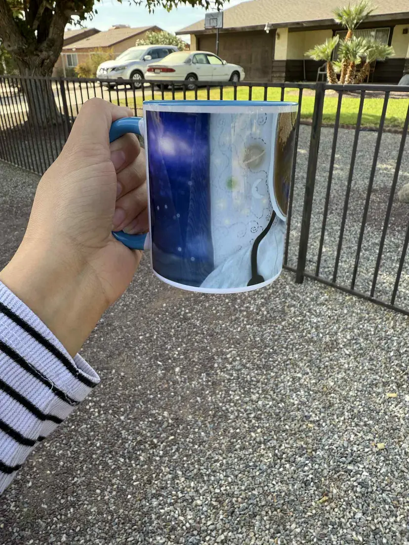 You’re not limited to this design — customers can also choose other artwork from my portfolio or request a custom drawing made just for them (available at an additional cost). With multiple interior colors to pick from, each mug becomes a unique, personalized piece — perfect for morning coffee, tea, or as a creative gift.