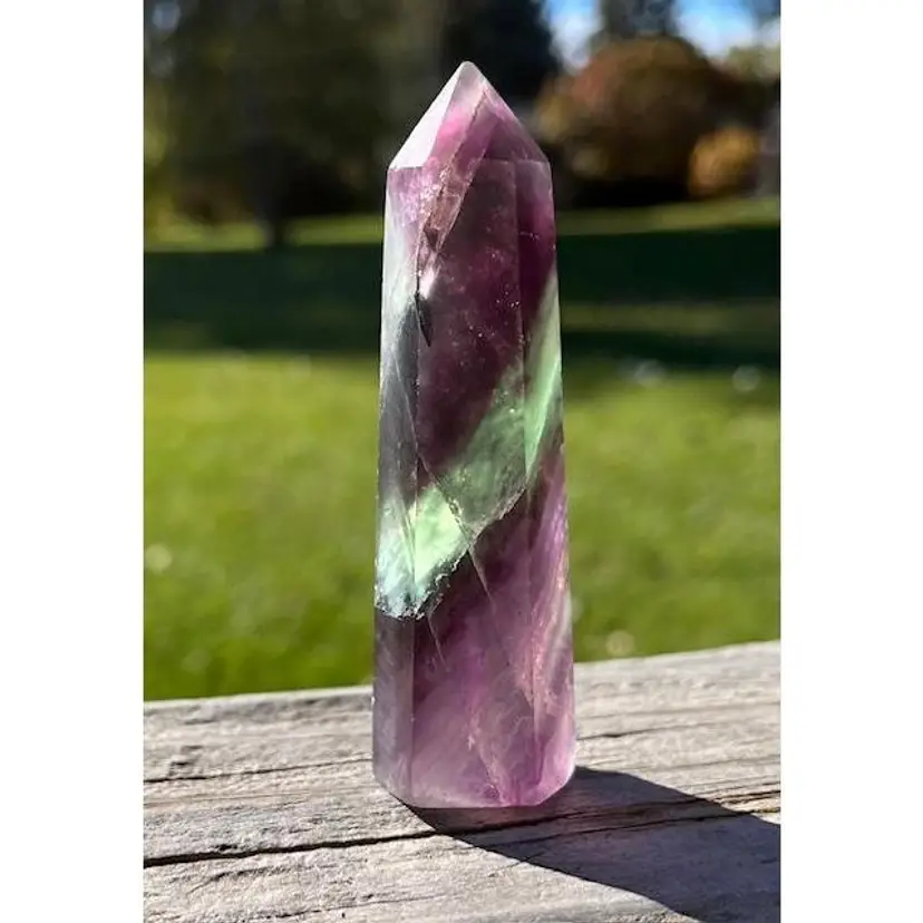 A pretty Multi color Fluorite Point. 75 Grams. Approximately 3 1/2 inches tall and 1" Wide.
