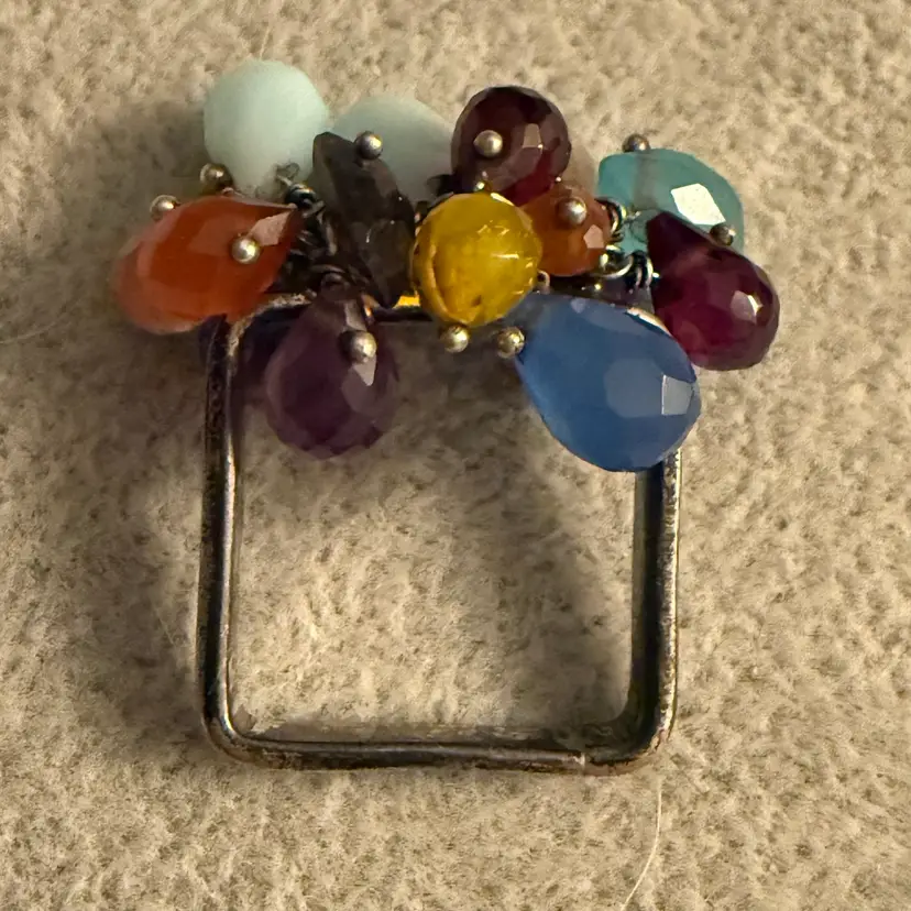Multi Gemstones Cha-Cha 925 Sterling Silver Square Ring Size 8 Unmarked Tested