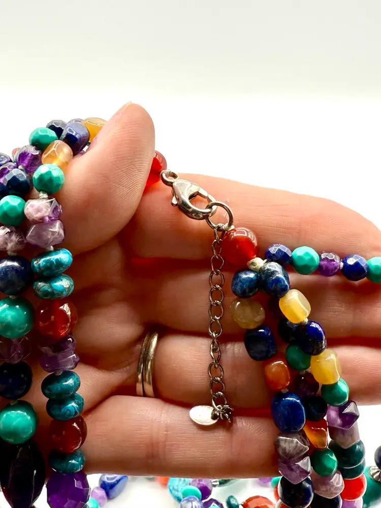 Multi-Strand Beaded Gemstone Necklace LUC CN Some Semi-Precious Polished Stones. Necklace 22”, with adjustable Clasp for longer fit.