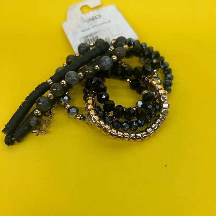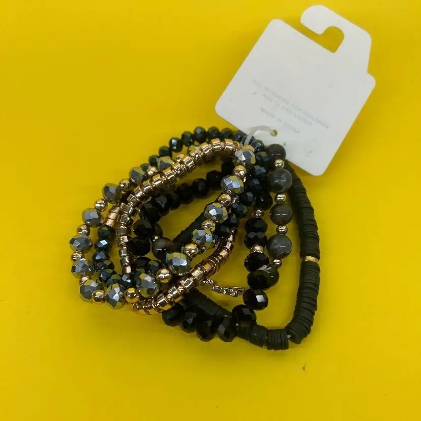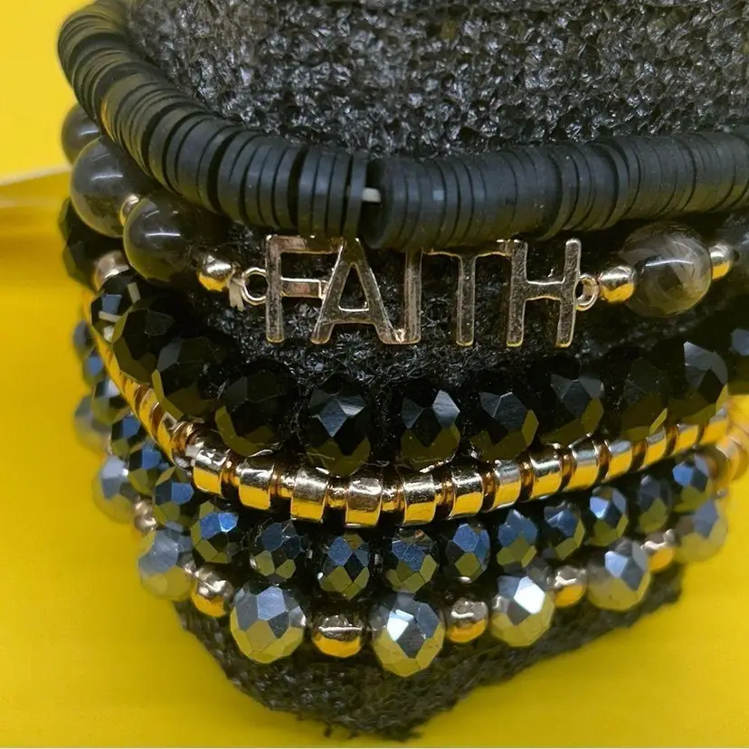 Blue/Black/Gold Multi-Strand Stretch Bracelets Faith