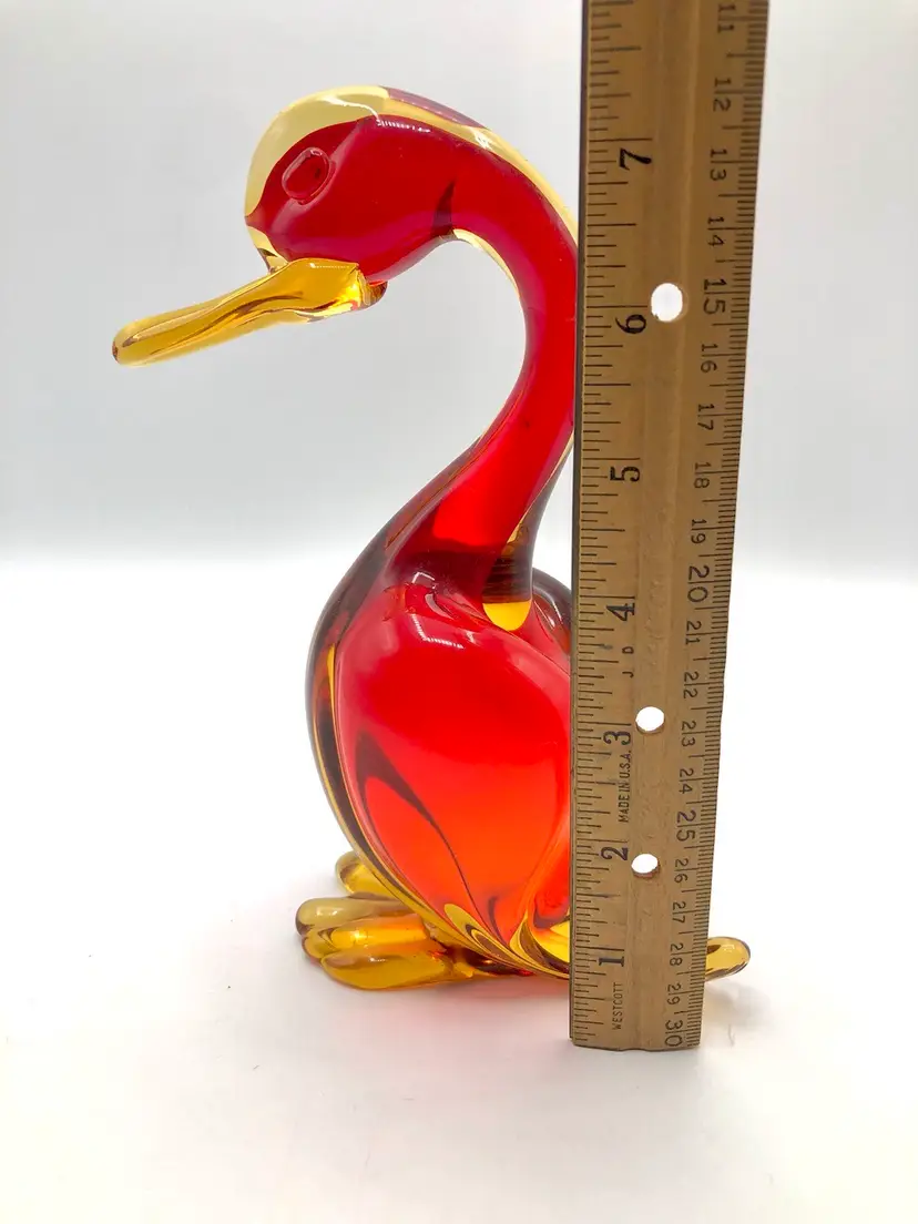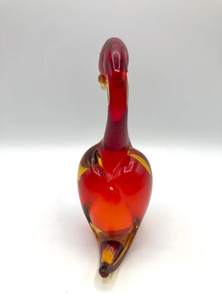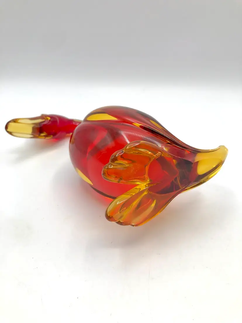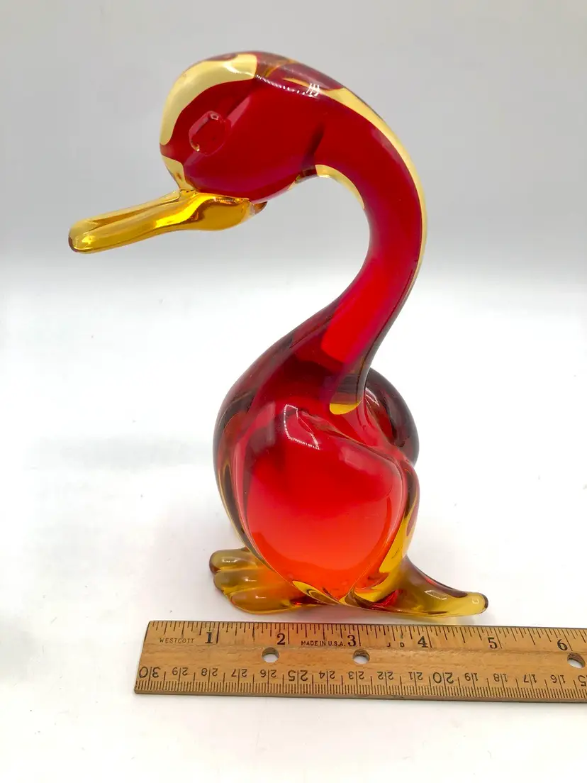 Art Glass Murano duck, swan or goose in beautiful sommerso Amberina. Measures 7” tall x 5” long x 3” wide. Smooth, polished bottom. No crack, chips or damage.