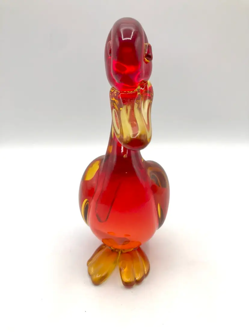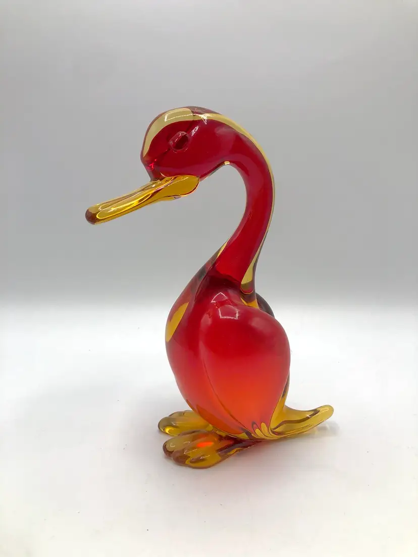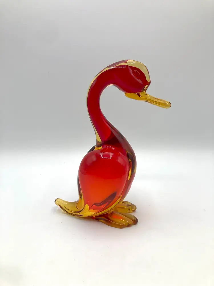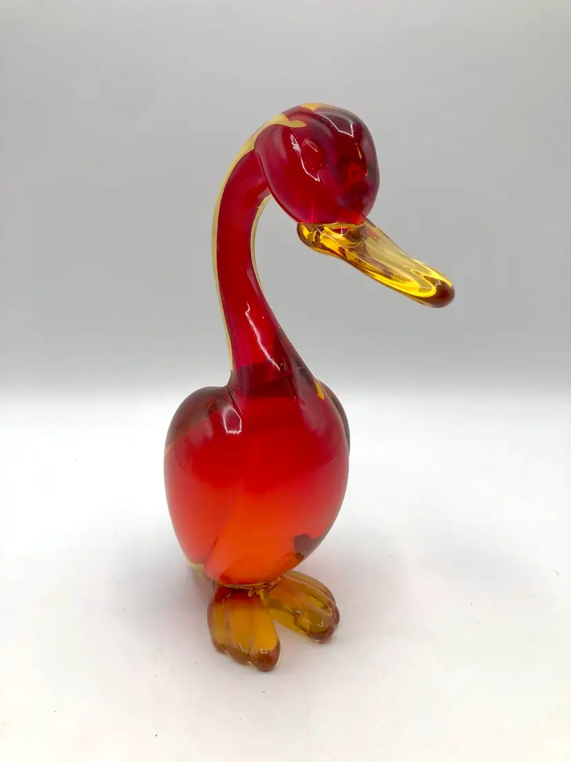 Art Glass Murano duck, swan or goose in beautiful sommerso Amberina. Measures 7” tall x 5” long x 3” wide. Smooth, polished bottom. No crack, chips or damage.