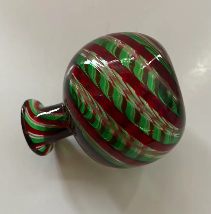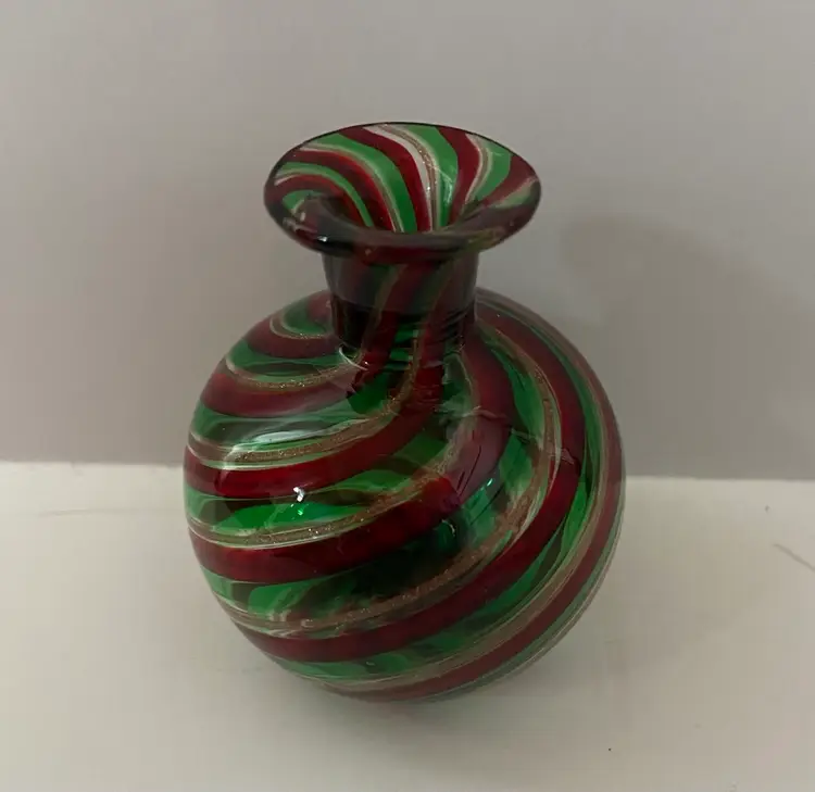 Beautiful Murano glass aventurine Perfume bottle/vase. Red/Green & Gold. It is unclear if this was intended to be a perfume bottle or a vase. It is an excellent condition with no chips or cracks.