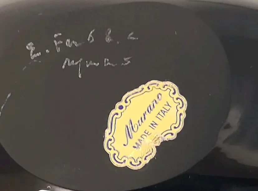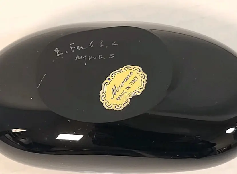 This decorative item, complete with its original Murano branding and a sticker marking its authenticity, is a handcrafted masterpiece. Though vintage, it carries the artisan's signature, assuring its uniqueness and the craftsmanship that went into its creation. Whether it's for personal enjoyment or as a thoughtful gift, this paperweight will surely be a conversation starter and a cherished addition to any collection.
