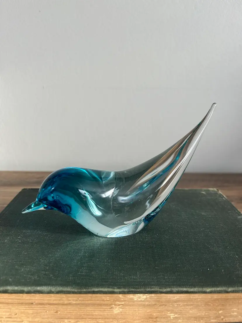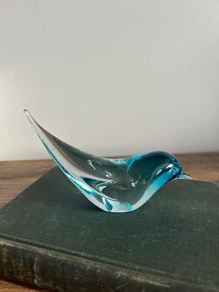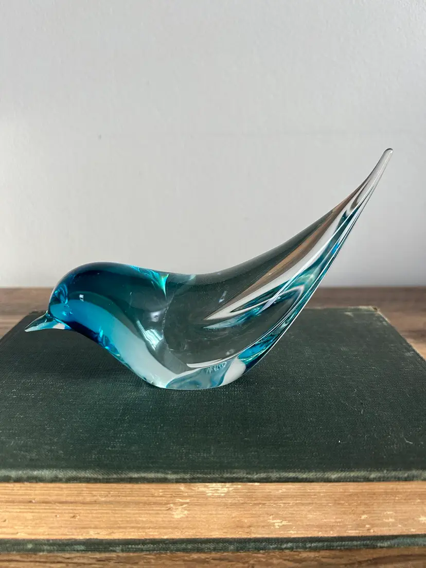 Beautifully made art glass bird 7” long x 4” tall. Artist signed Elio Raffaelli renowned Murano artist.