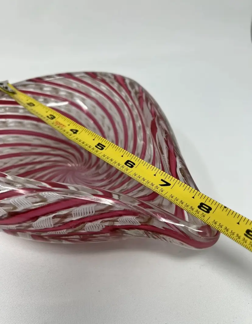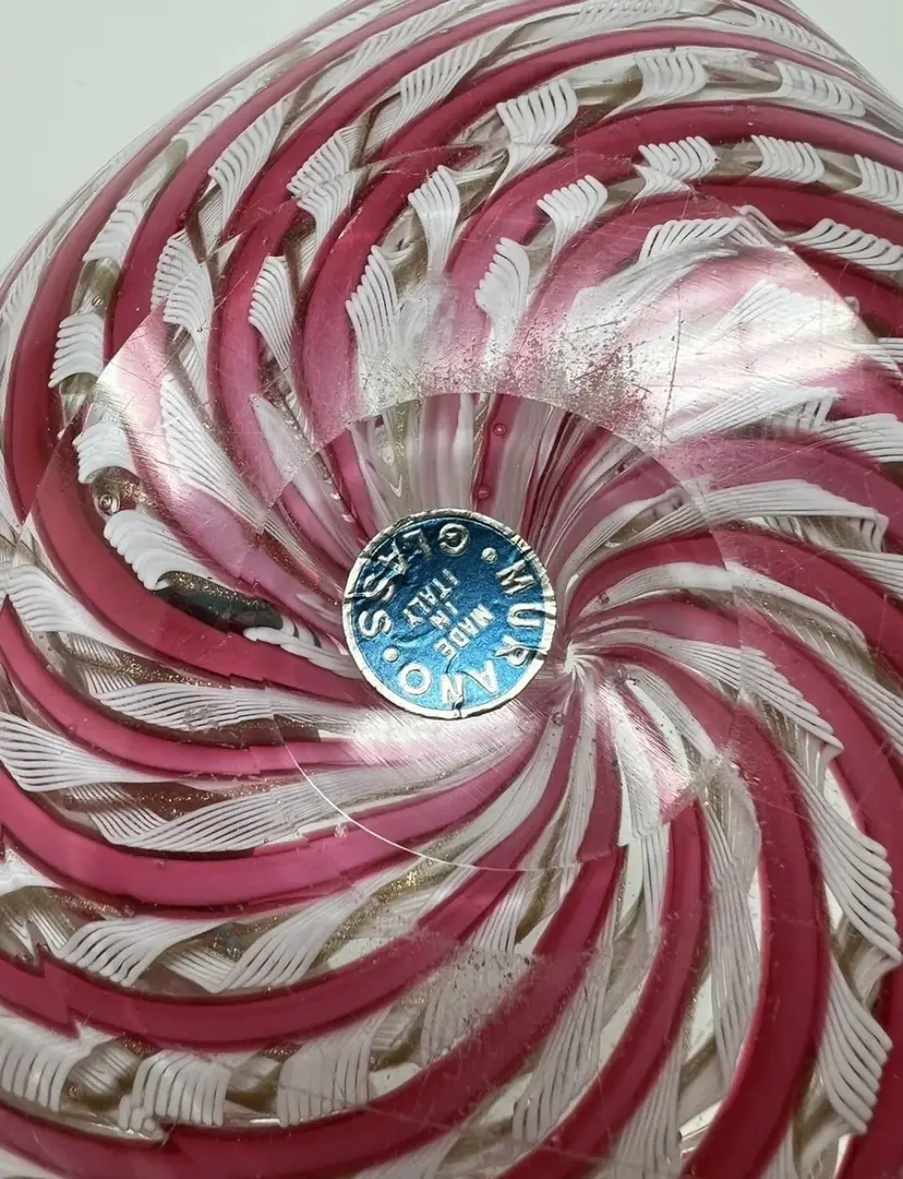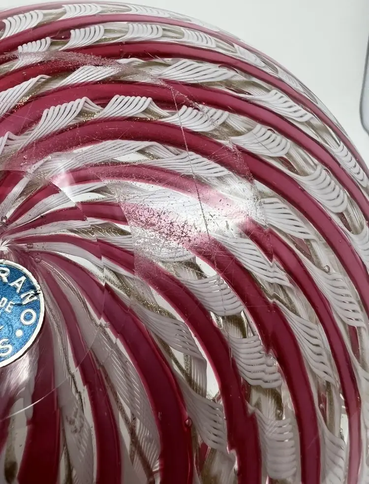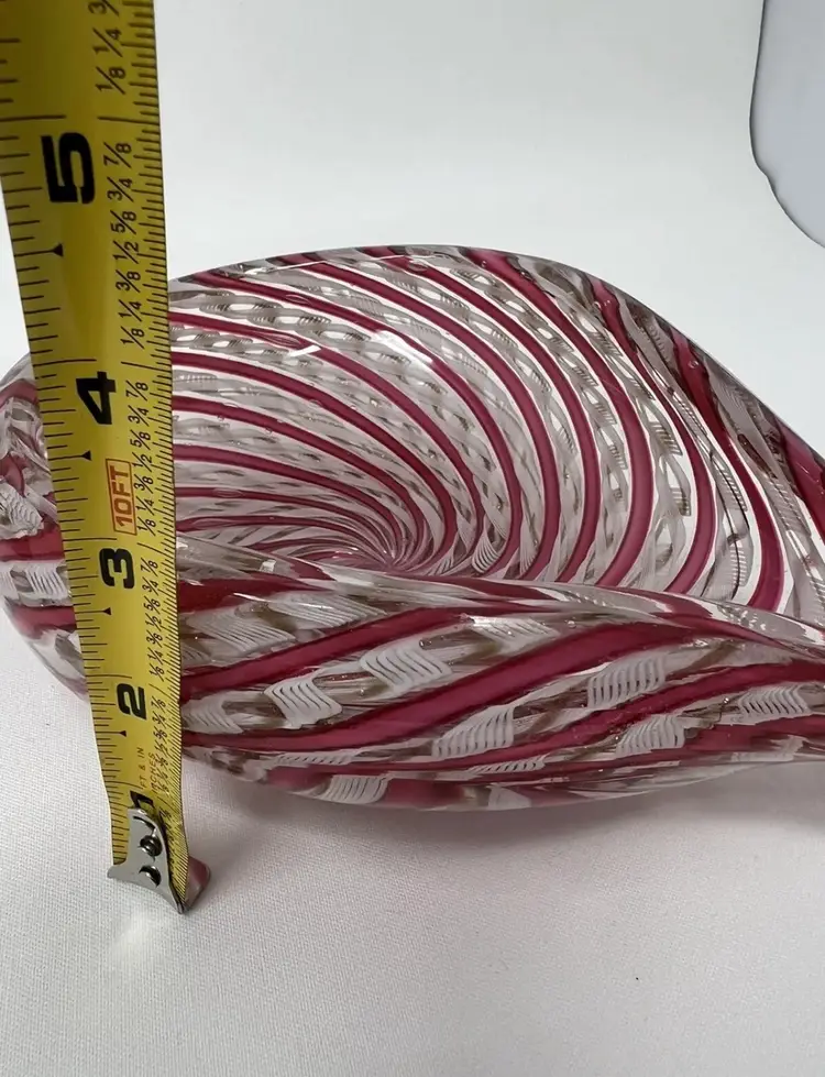 Murano Glass Fratelli Toso Bowl Cranberry Pink White Zanfirico Aventurine Swirl